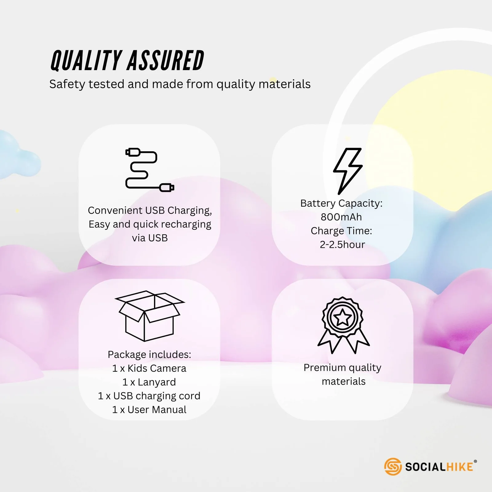 The camera boasts a fast charge time of just 2-2.5 hours, ensuring your child never has to wait long to get back to their photography adventures. Plus, with compatibility for 32GB SD cards, there’s plenty of room to store countless photos and videos.