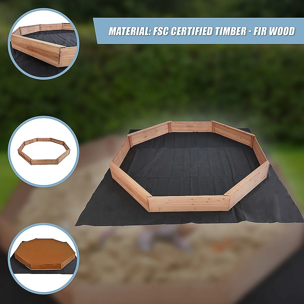 Our Kids Large Octagonal Wooden Sandpit makes the ideal toy for summer. Made from FSC Certified Timber, the sandpit also comes equipped with bench seats which can accommodate at least four children at a time.