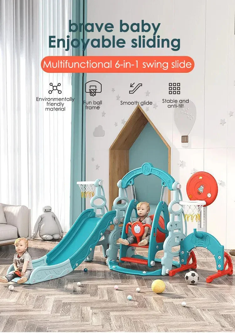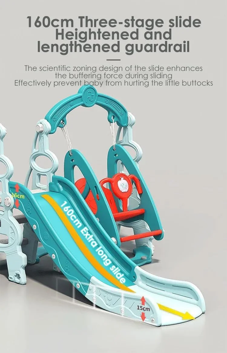 Create endless indoor fun with the All-in-One Kids Play Setdesigned to keep little adventurers active, engaged, and smiling. Featuring a smooth slide, secure swing, and built-in basketball hoop, it brings the playground to your home with safety and style.