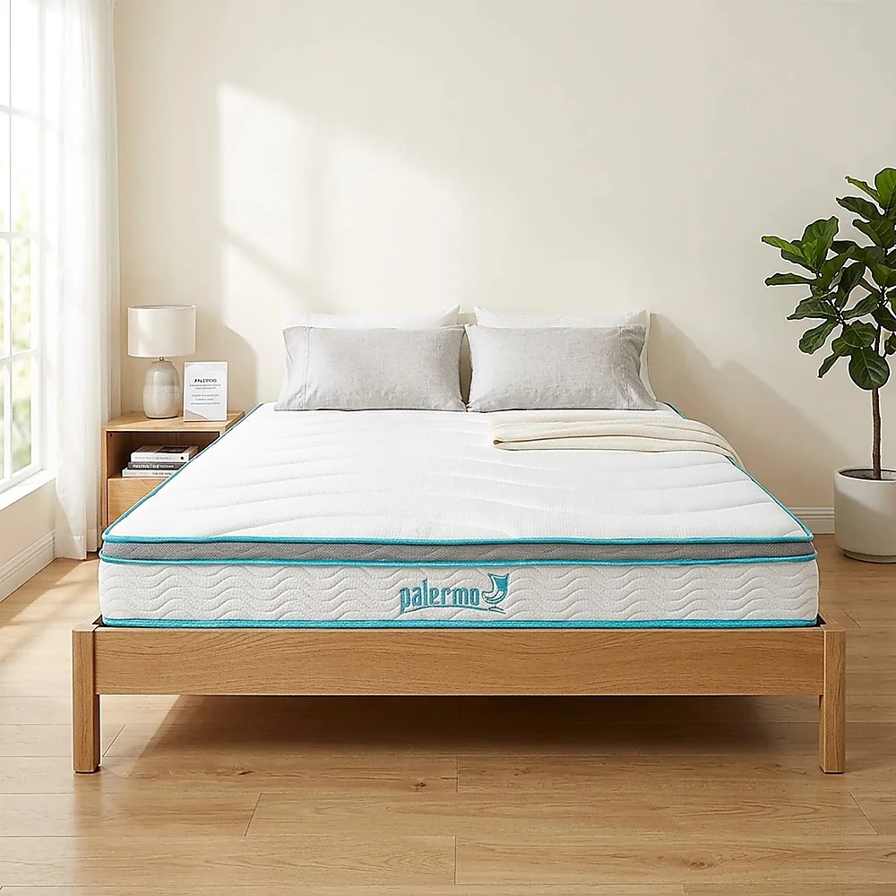 Welcome to the revolutionary comfort of the Palermo hybrid mattress. We quilted memory foam atop a layer of comfort foam, creating a sleep surface that conforms to your unique body shape and relieves pressure points. Then, we place this onto a set of traditional steel spring coils that provides the firmness that many need.