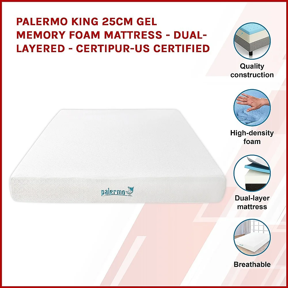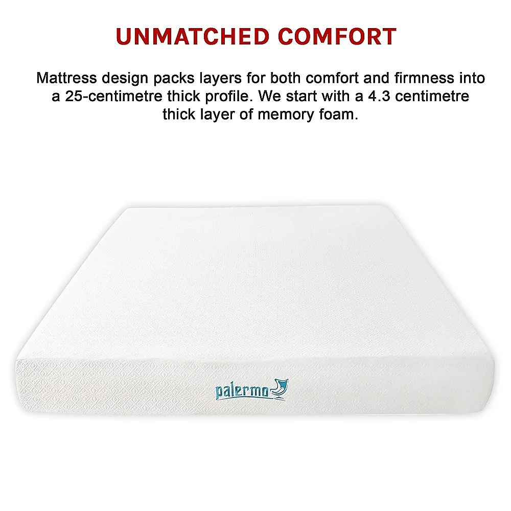 Sleep better every night with the Palermo King Gel Memory Foam Mattress, designed for comfort, support, and durability. Its 25cm dual-layer design combines plush memory foam with a high-density support base for balanced comfort and long-lasting strength.Over the top of the memory foam, we added the revolutionary OEKO-100 compliant blend fabric cover. It enhances breathability by creating an air layer while also reducing moisture.