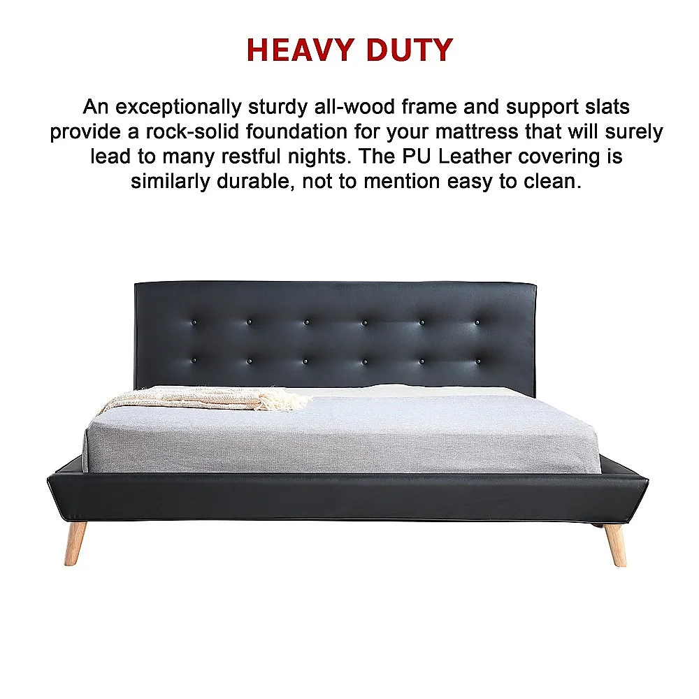 Palermo PU Leather King Bed Frame and Button Tufted Headboard Black