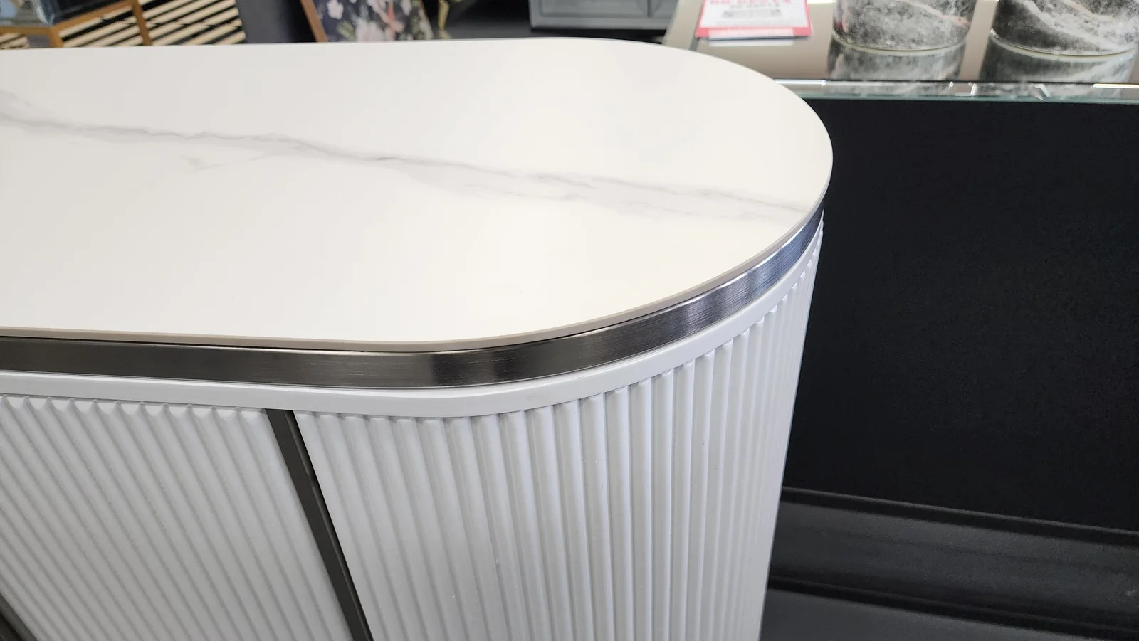 Introducing the Kingsley Sideboard/Buffet Table in white, a perfect blend of sophistication and luxury. Featuring a sleek white marble top with a striking white vein pattern, this buffet table adds a touch of elegance to any dining or living space. The white finish with silver trim further enhances its luxurious appeal. With its generous dimensions of 150cm x 40cm x 92cm, this buffet table offers ample storage and display space for your dining and living essentials.