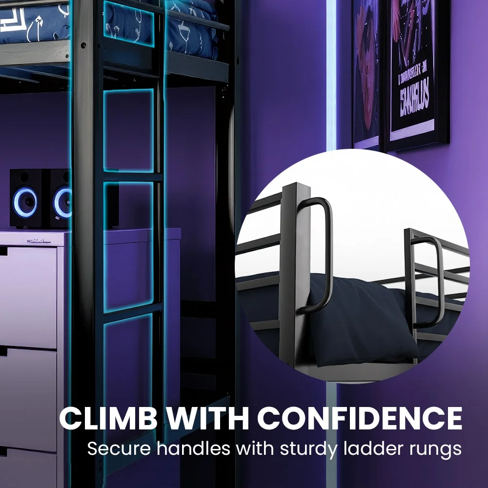Each bed holds up to 120kg. The fixed ladder stays put. No wobbles. No slips. Just confidence every time you climb.