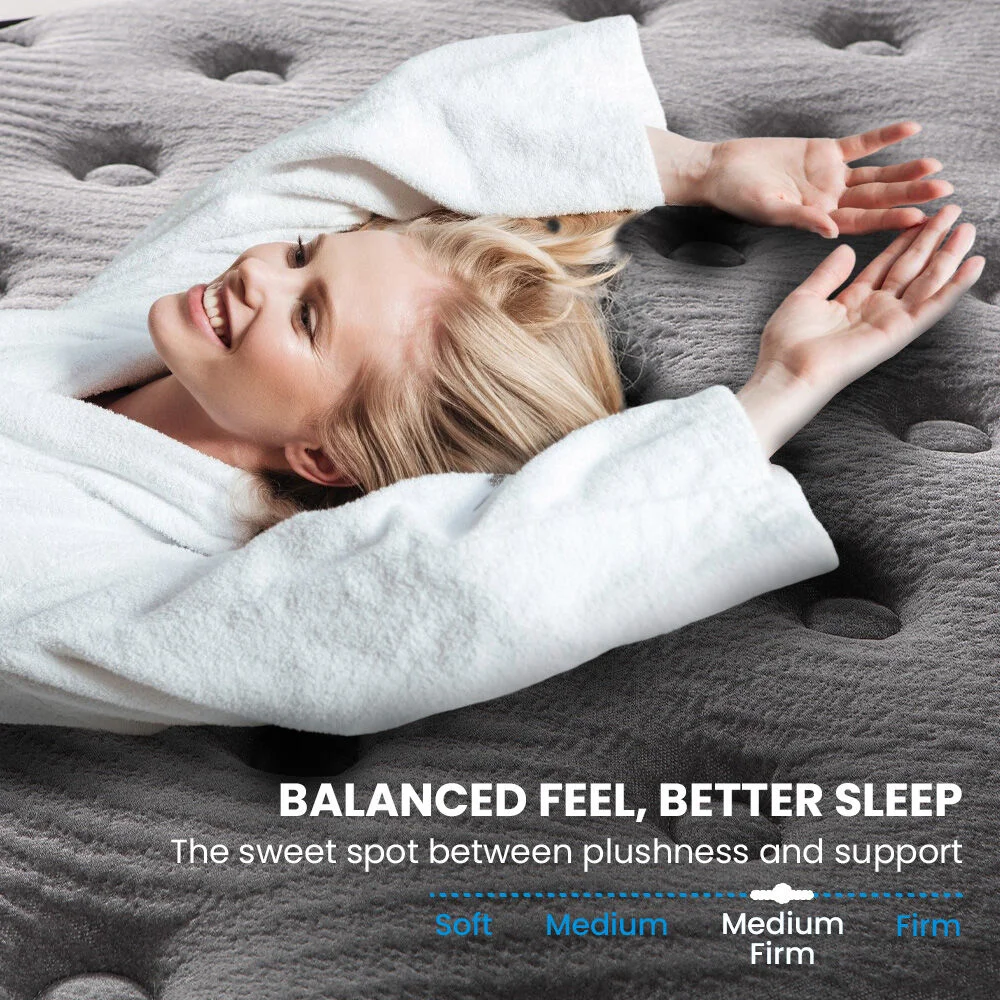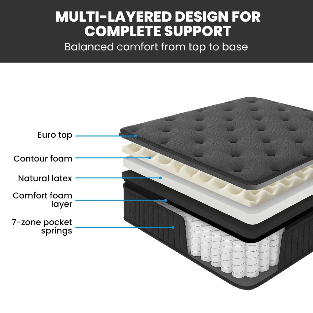 Beneath the comfort layers, a 7-zone pocket spring system adapts to your bodys shape, with each zone responding to key pressure points like the shoulders, back, hips and legs. Individually wrapped springs move independently to absorb movement and reduce partner disturbance, supporting a more peaceful sleep for two.