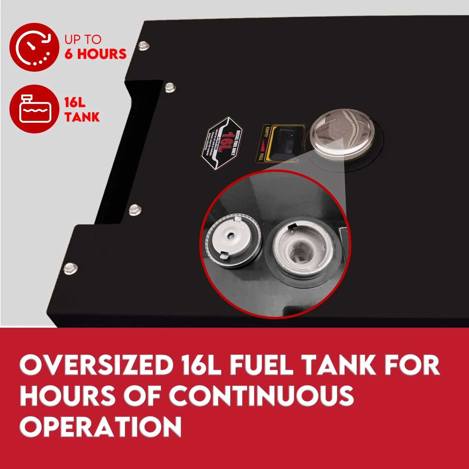 This generator can be wired into your home or business’ electrical system. Its 16L fuel tank can run unattended for up to 6 hours straight even when the main power is cut. With its patented super silent enclosure you will continue on powering the house without waking the neighbours. It also includes roller wheels for when transporting is required and can be removed for stationary purposes.