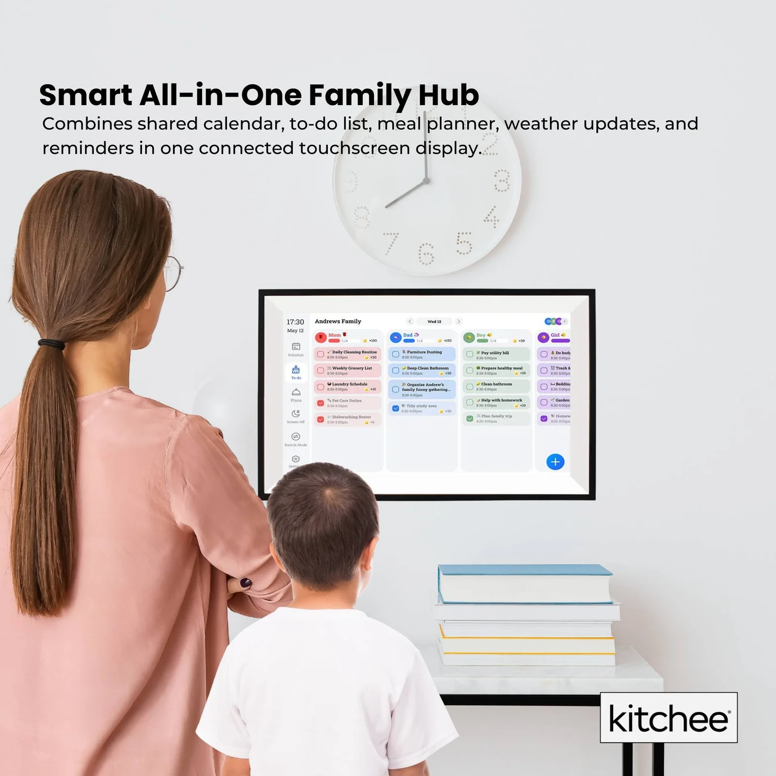 Kitchee Smart Digital Family Calendar is the all-in-one touchscreen planner that keeps your entire household in sync. Featuring a crystal-clear 15.6-inch (39.5 cm) HD display, this WiFi-connected device lets you view shared schedules, plan meals, manage chores, and sync calendars from Google, iCloud, Outlook, and more. Mount it on the wall or place it on your benchtop, it’s your digital family planning hub.