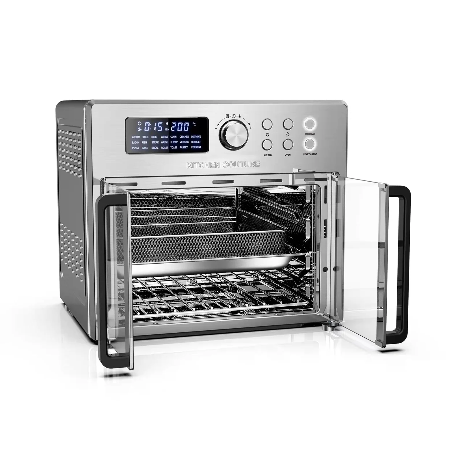With a large 25 litre capacity, this fabulous French door Kitchen Couture Air Fryer Oven is multifunctional and offers intuitive manual temperature and time controls that are easy to use.