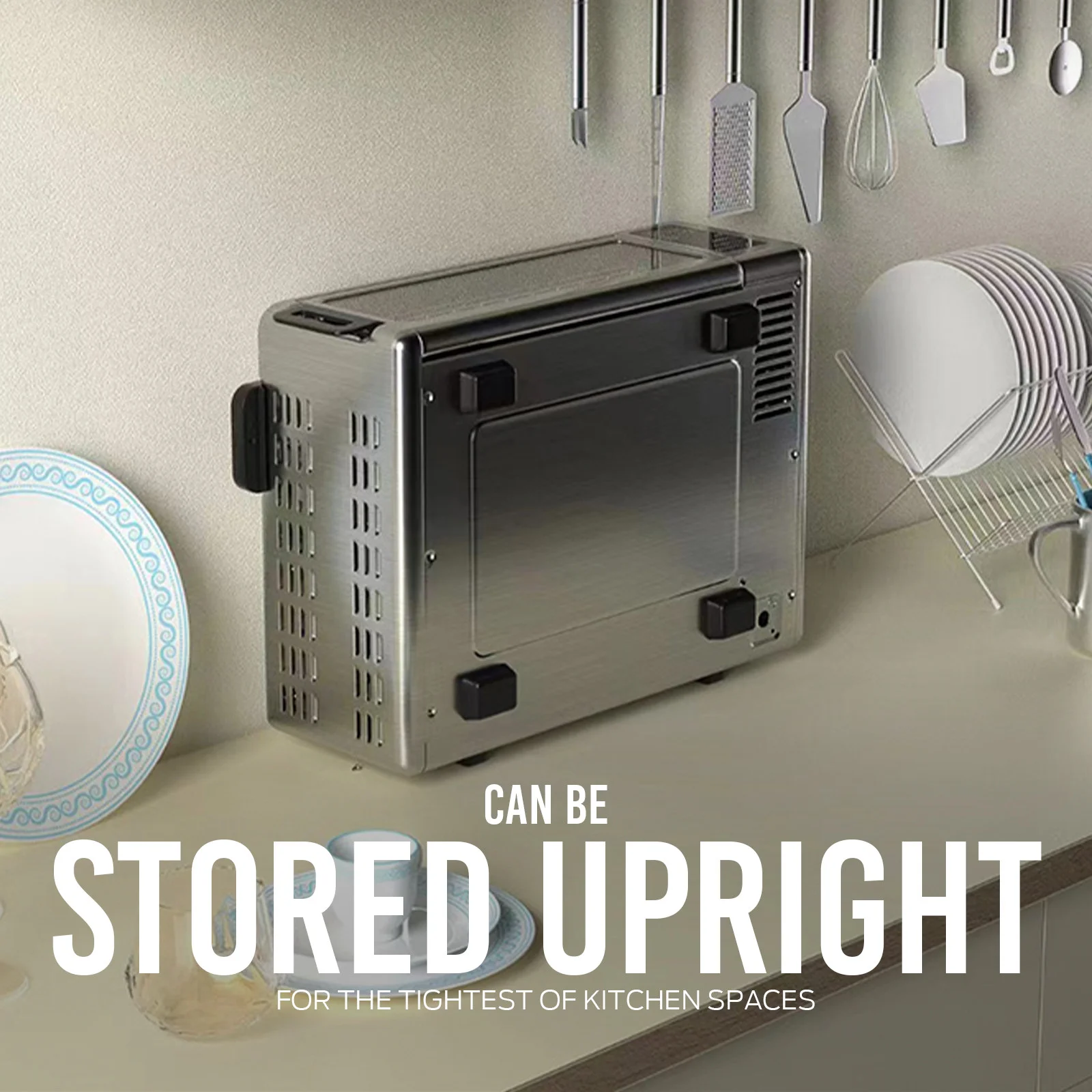 - Unique vertical storage design allows the unit to be stored away safely with short side upwards