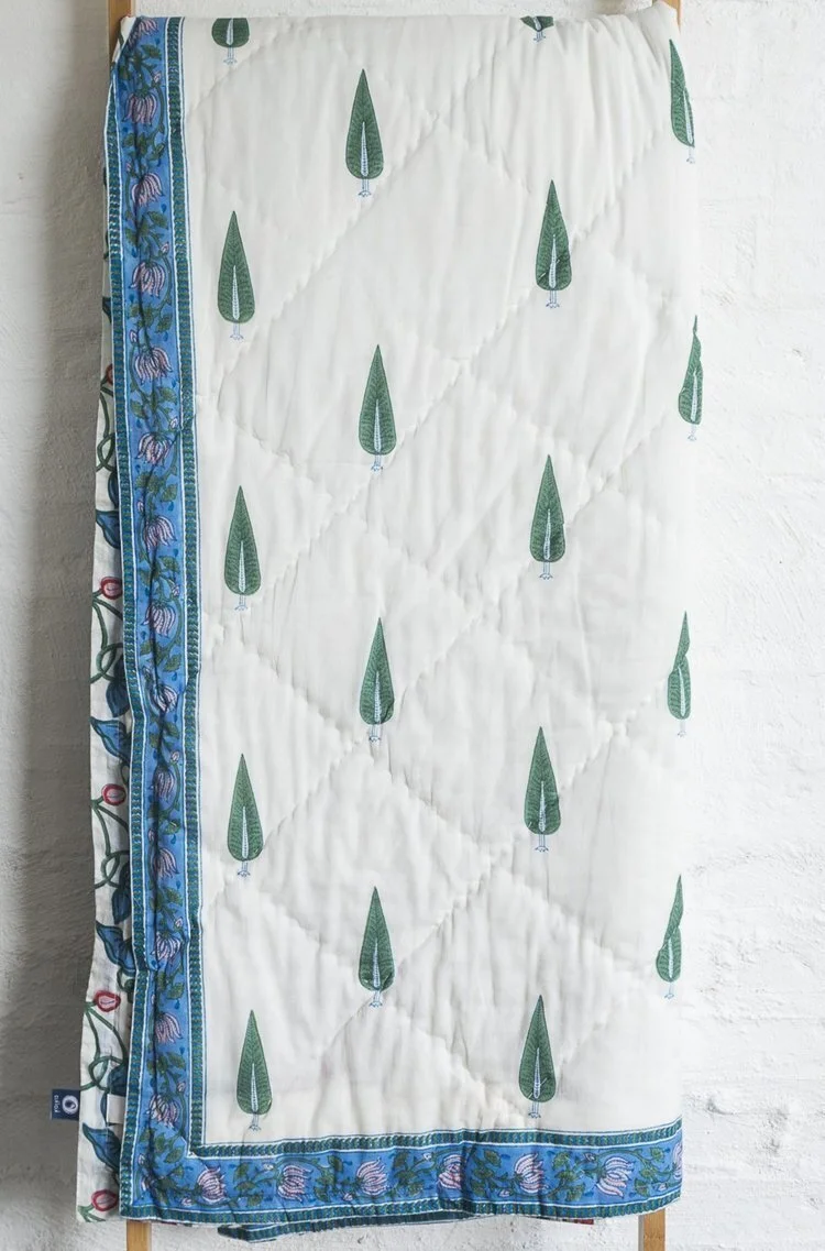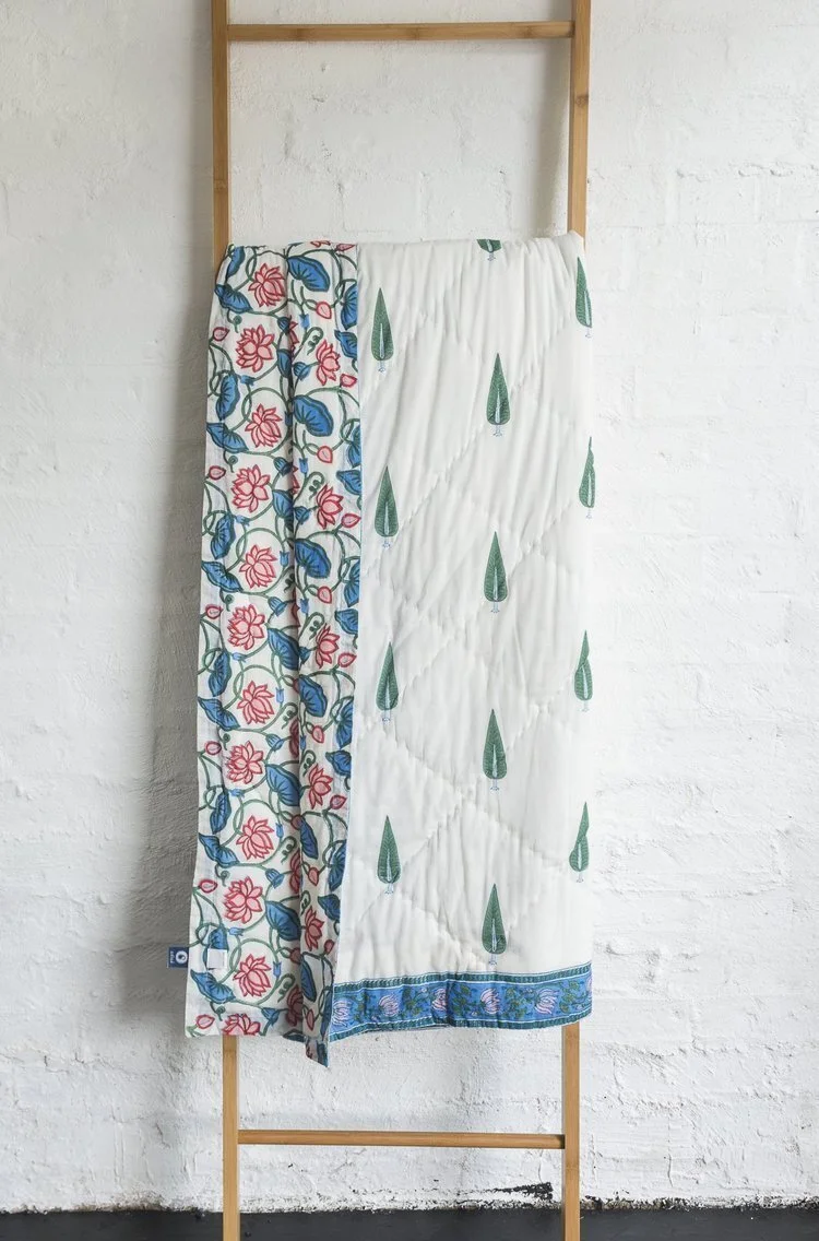All our quilts are designed in Melbourne and individually hand block printed by skilled artisans. Our quilts are hand made using superior quality pure cotton fabric.