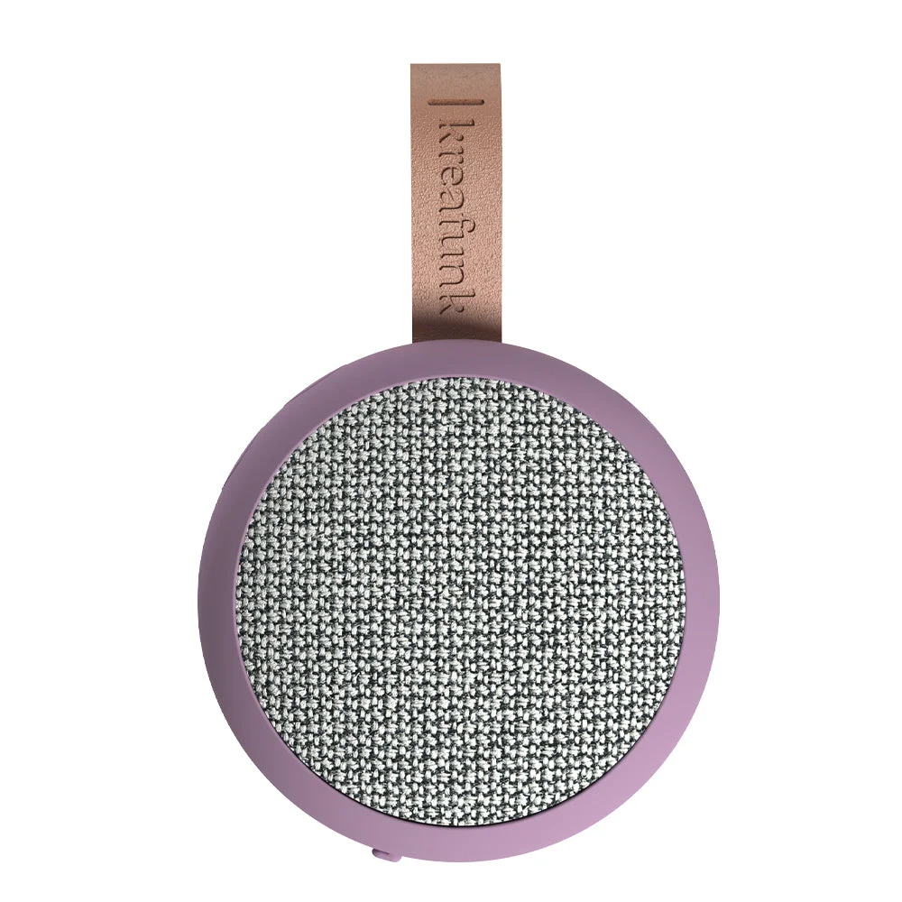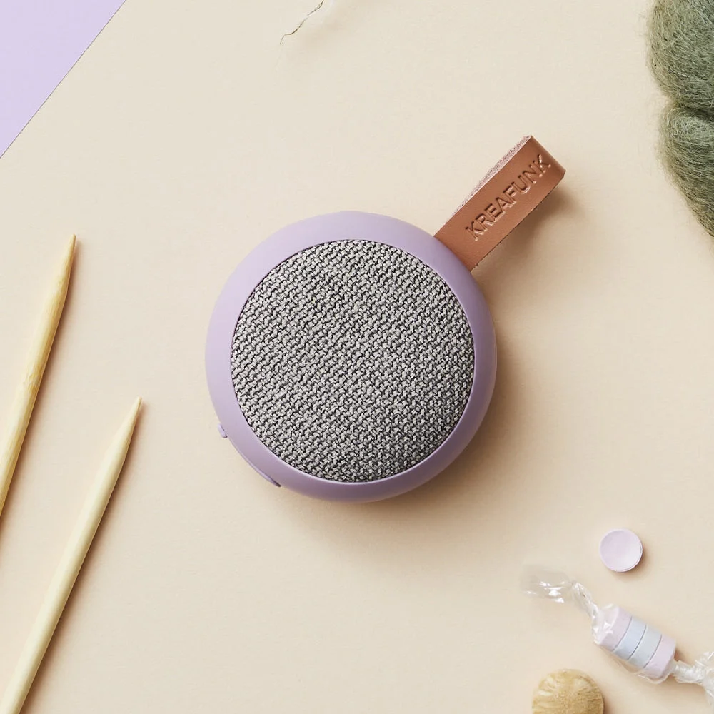 Kreafunk Ago 2 Fabric Bluetooth Speaker - Calm Purple - Kreafunk Ago 2 Fabric Bluetooth Speaker - Dusty Green - aGO 2 fabric Compact Power, Refined Sound. Don't let its size fool you the aGO 2 fabric speaker delivers big performance in a small, stylish package. An evolution of our bestselling aGO, this upgraded version features enhanced, precision-tuned sound that's surprisingly powerful for its compact form.With smooth curves and a minimalist design, the aGO 2 fabric looks right at home in any space. Hang it on a hook, slip it into your bag or pocket, and bring your music wherever life takes you. Splash-resistant and durable, it's ideal for everything from beach days to bathroom playlists.Pair two speakers using Stereo Play for immersive stereo sound perfect for parties or just enhancing your everyday soundtrack.The speaker's textile front is crafted from 98% recycled plastic bottles, supplied by Gabriel, giving it a unique look with a sustainable edge.