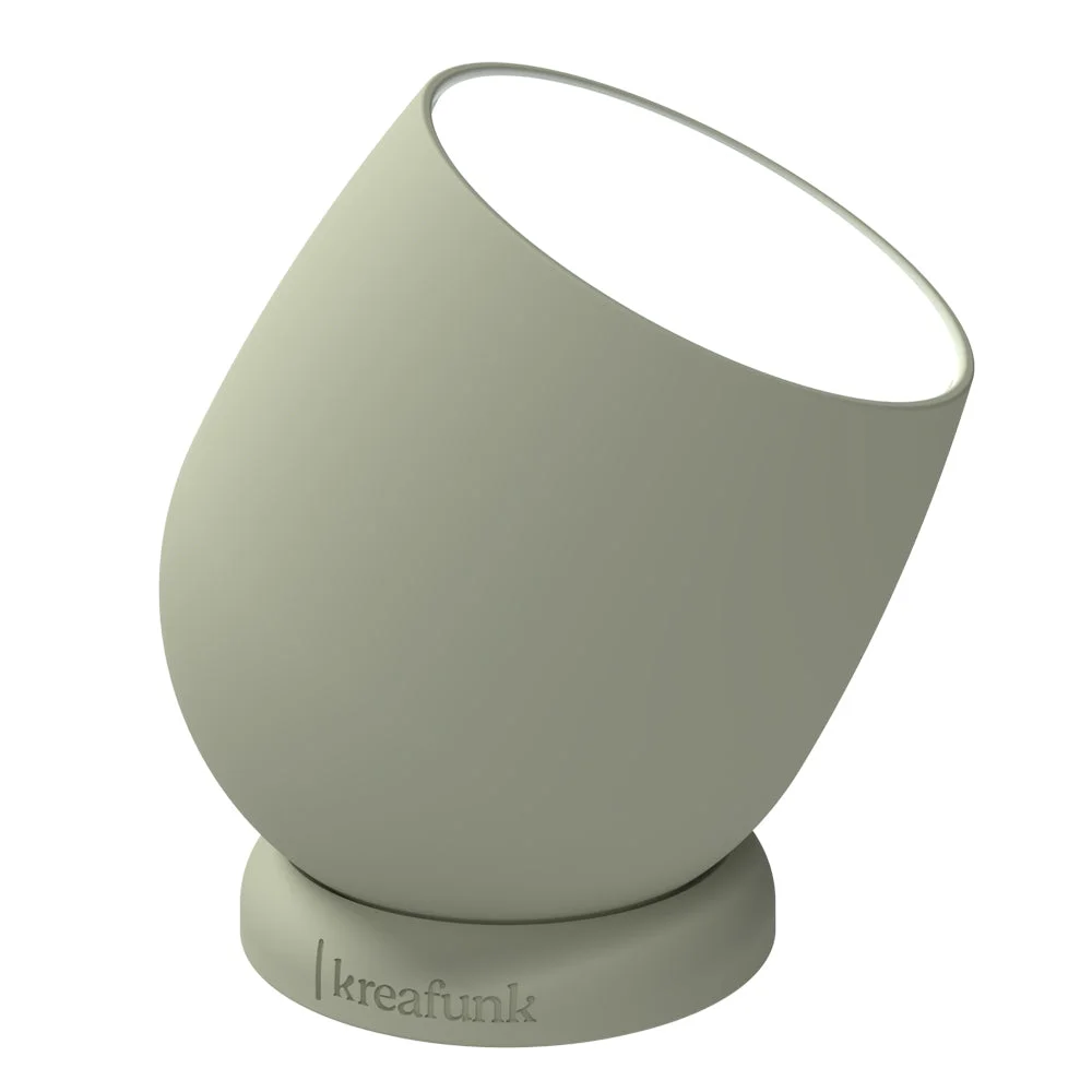 Kreafunk Beam Lamp, Portable And Rechargeable - Dusty Olive - Beam A Touch of Modern Elegance.Experience lighting reimagined with Beam a sleek, modern lamp designed for effortless usability and style.With its intuitive touch-sensitive control, turning the light on and off or adjusting brightness is as simple as a tap. Beam adapts to your environment and mood with precision and ease.Thanks to its wireless design, Beam offers complete flexibility place it anywhere, no cords attached. The removable, rotating base allows you to direct light exactly where you need it, making it as versatile as it is beautiful.Crafted to complement any room, Beam adds warmth and ambiance wherever it's placed.
