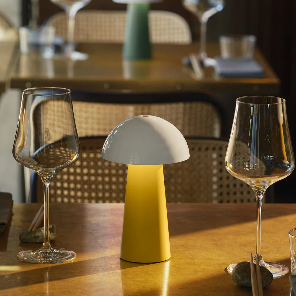 Bello Portable Lamp.Light that moves with you – from indoors to out.Bello is a sleek, modern portable lamp designed to bring a warm, inviting glow to any space. Its clean lines and contemporary finishes – including two new wood-inspired textures – make it easy to blend into any setting. Use one or group several for an extra cozy atmosphere wherever you are.Long-lasting and versatile.With up to 50 hours of battery life, Bello goes wherever you do. Move it from room to room, take it out for a relaxing dinner on the terrace, a quiet read on the balcony, or long summer nights under the stars.Built for real life.Crafted from 100% recycled GRS plastic and rated water-resistant (IPX4), Bello is as sustainable as it is durable. It’s designed to handle both indoor elegance and outdoor adventures.Simple, smart lighting.Just tap the top to switch between three brightness levels (10%, 50%, 100%). Use the built-in timer if you'd like the light to gently fade on its own.