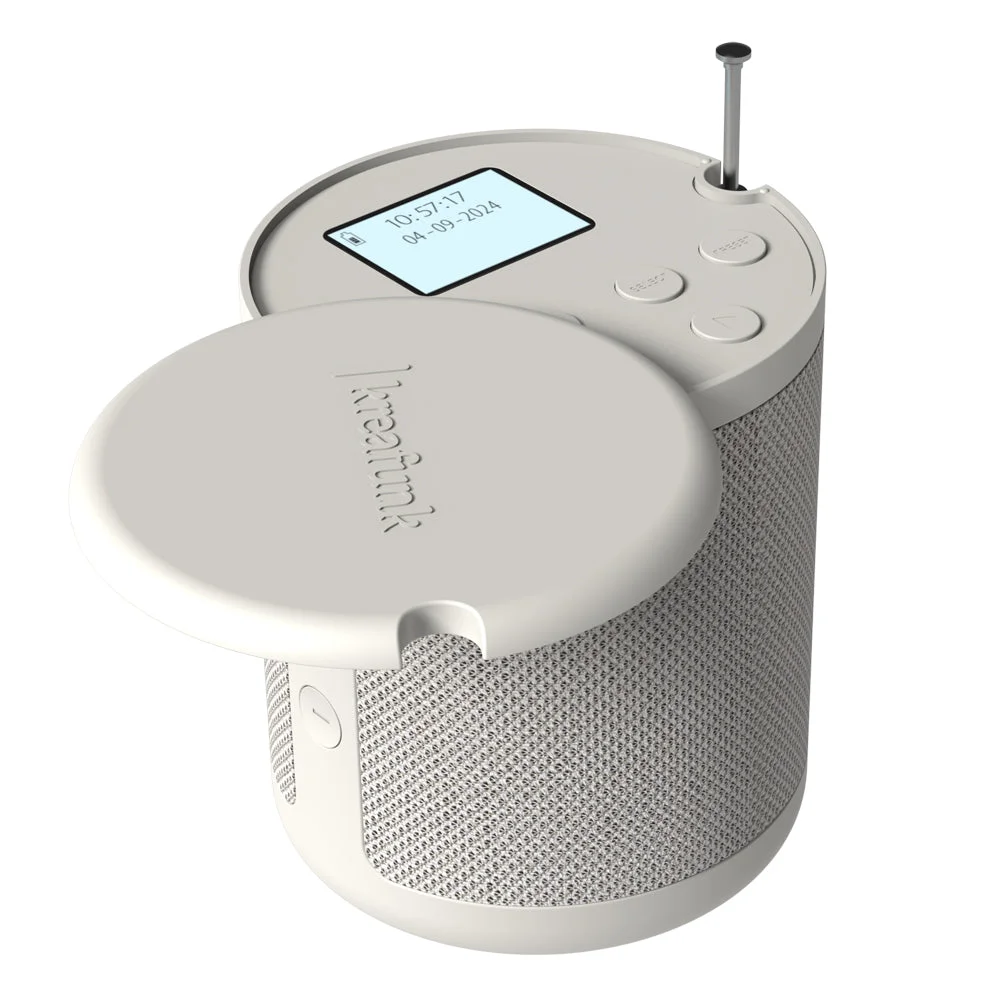 Kreafunk Dabbie Dab+/Fm Radio W/ Bluetooth - Soft White - Dabbie by Kreafunk Where Elegant Design Meets Everyday Functionality. Introducing Dabbie the sophisticated DAB+ radio and Bluetooth speaker hybrid from Kreafunk that effortlessly blends style and versatility. Whether you're tuning into crystal-clear DAB+ or FM radio or streaming your favorite playlists via Bluetooth, Dabbie delivers outstanding sound quality that elevates any moment. Designed for modern living, Dabbie includes smart features like wireless charging and an integrated alarm clock, making it a functional companion from morning routines to weekend getaways. The minimalist display can be discreetly hidden for a sleek, clutter-free look.Perfectly portable and IPX4 water-resistant, it's ideal for both indoor ambiance and outdoor adventures.