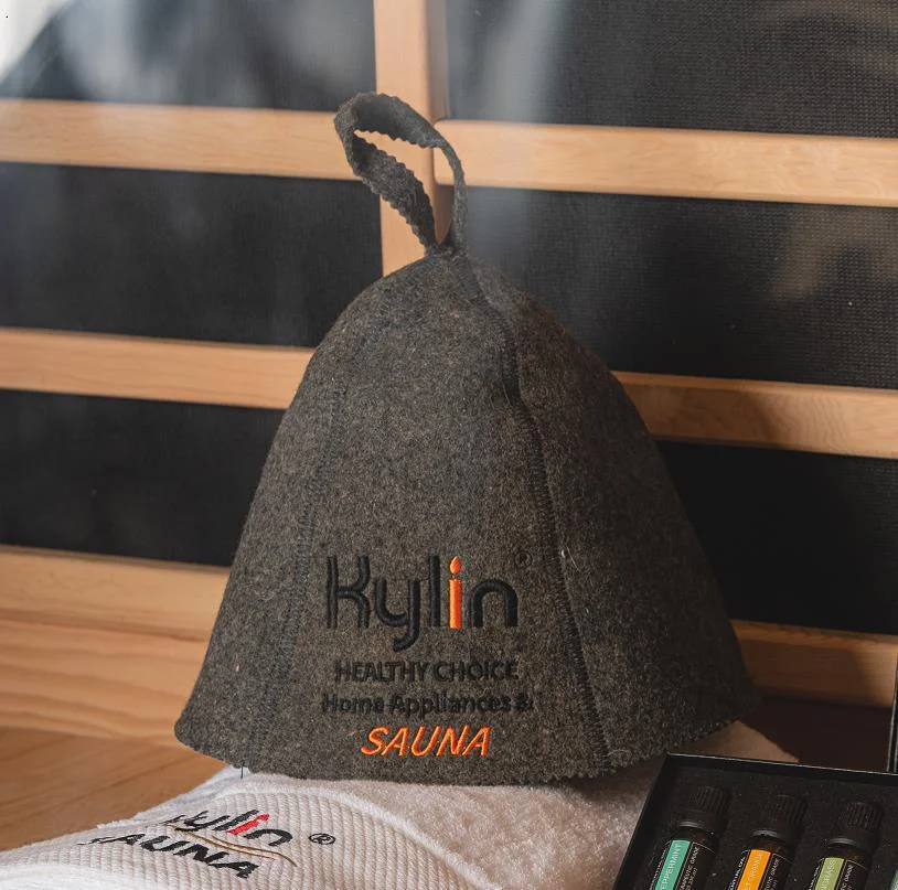 The sauna hat is made of wool felt and laminated, which looks beautiful, thin and even. It feels comfortable, delicate, soft, durable and practical. It is suitable for both men and women. There is a small hanging ring on the upper so you can take it with you or it can be hung up. It is mainly used to prevent being scalded during sauna.