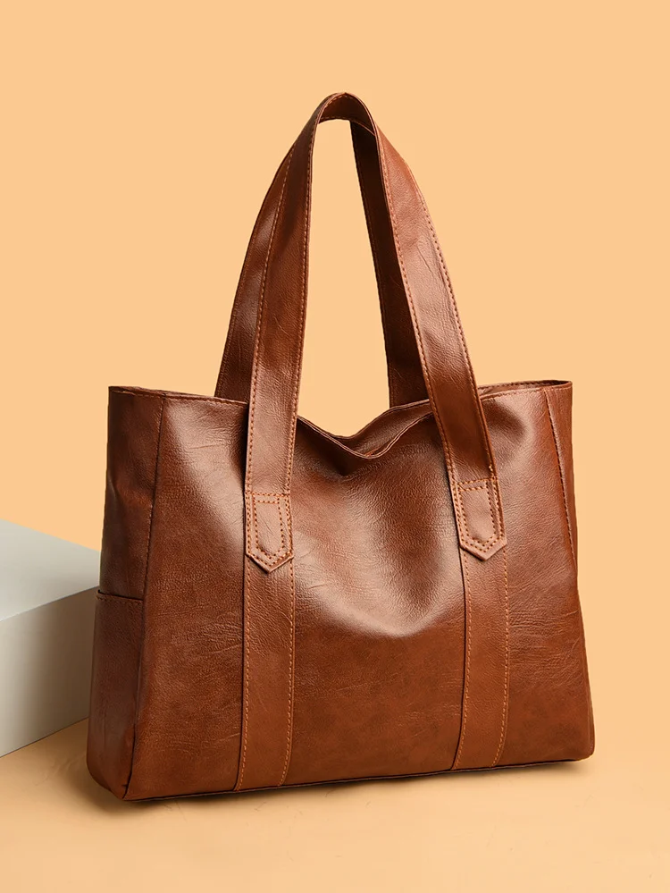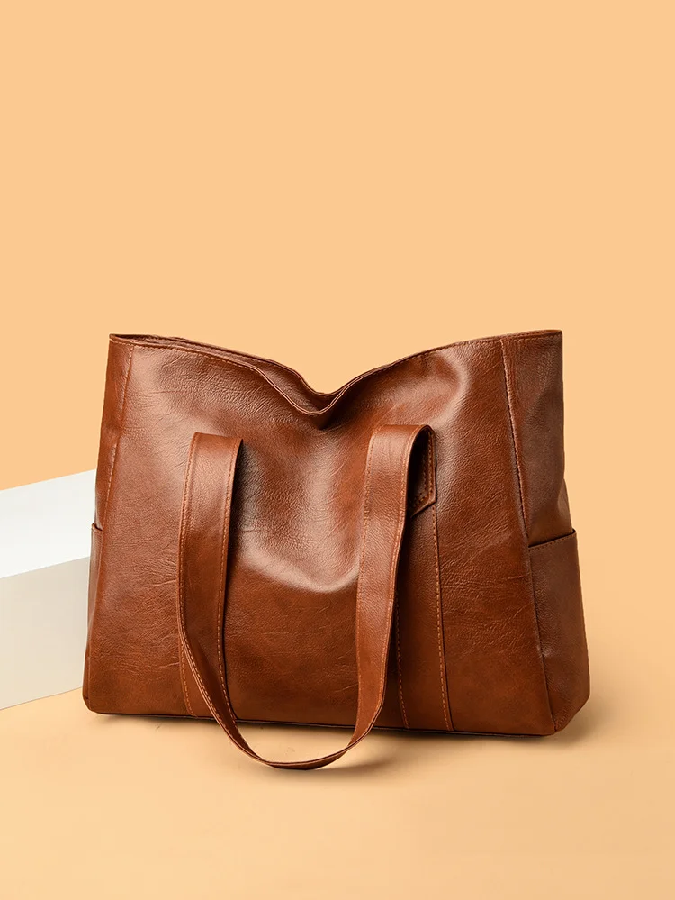 This 2025 autumn new brown tote bag blends sleek leather-like texture with large-capacity functionality, ideal for daily commutes, work, or casual autumn outings.Simple Timeless Autumn StyleRich brown leather-like surface (with natural texture) fits 2025 autumn trends—easily pairs with coats, sweaters, or dresses for a sophisticated, versatile look.Large-Capacity Organized DesignSpacious interior (suitable for 13-inch laptops, cosmetics, documents, etc.) + external side pockets for quick access to small items (phones, keys) — keeps essentials tidy without bulk.Multi-Carry FlexibilityWide shoulder straps support single-shoulder carrying (comfortable for long-term use) or handheld styling; the design is also compatible with detachable crossbody straps (if paired separately) for travel.Durable Premium TextureHigh-quality leather-like material with reinforced stitching (especially on strap connections) ensures long-term use, while the soft texture maintains a polished appearance.Material: Leather-like fabricColor: Brown