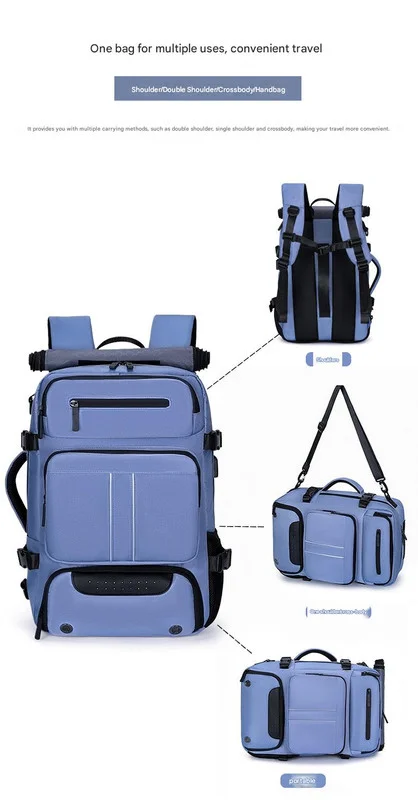 Travel smarter with this essential large-capacity convertible backpack, designed for business trips, commuting, and short getaways. This versatile bag easily transforms from a backpack into a briefcase or shoulder bag, adapting to your needs. It features a multi-layered design with a spacious main compartment, a dedicated padded interlayer for a 16-inch laptop, and multiple front pockets for orderly storage. A standout feature is the independent shoe compartment at the bottom, keeping your footwear separate from other belongings. Made from durable, water-repellent Oxford cloth and equipped with a comfortable sponge back pad, this bag ensures a comfortable carry. Stay connected on the move with the convenient external USB charging port.