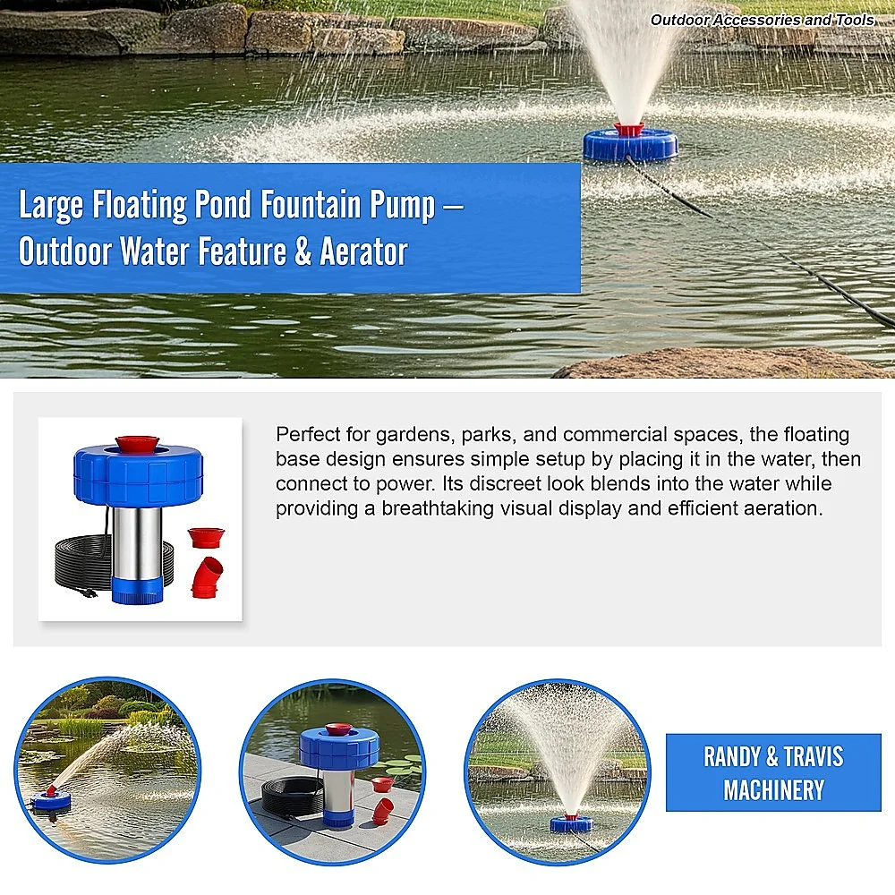 Upgrade your outdoor water feature with this Large Floating Pond Fountain Pump. Designed with a powerful 750W motor and 25,000 L/h capacity, it delivers both stunning fountain effects and essential aeration for ponds, lakes, and large water reservoirs. Easy to install and maintain, this floating pump enhances landscapes while improving water quality.