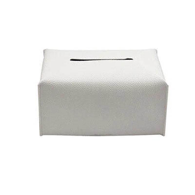 Leather Tissue Box Holder Rectangular Tissue Dispenser for Living Room Home - White