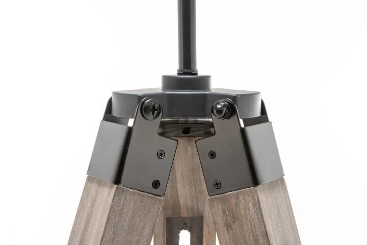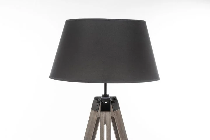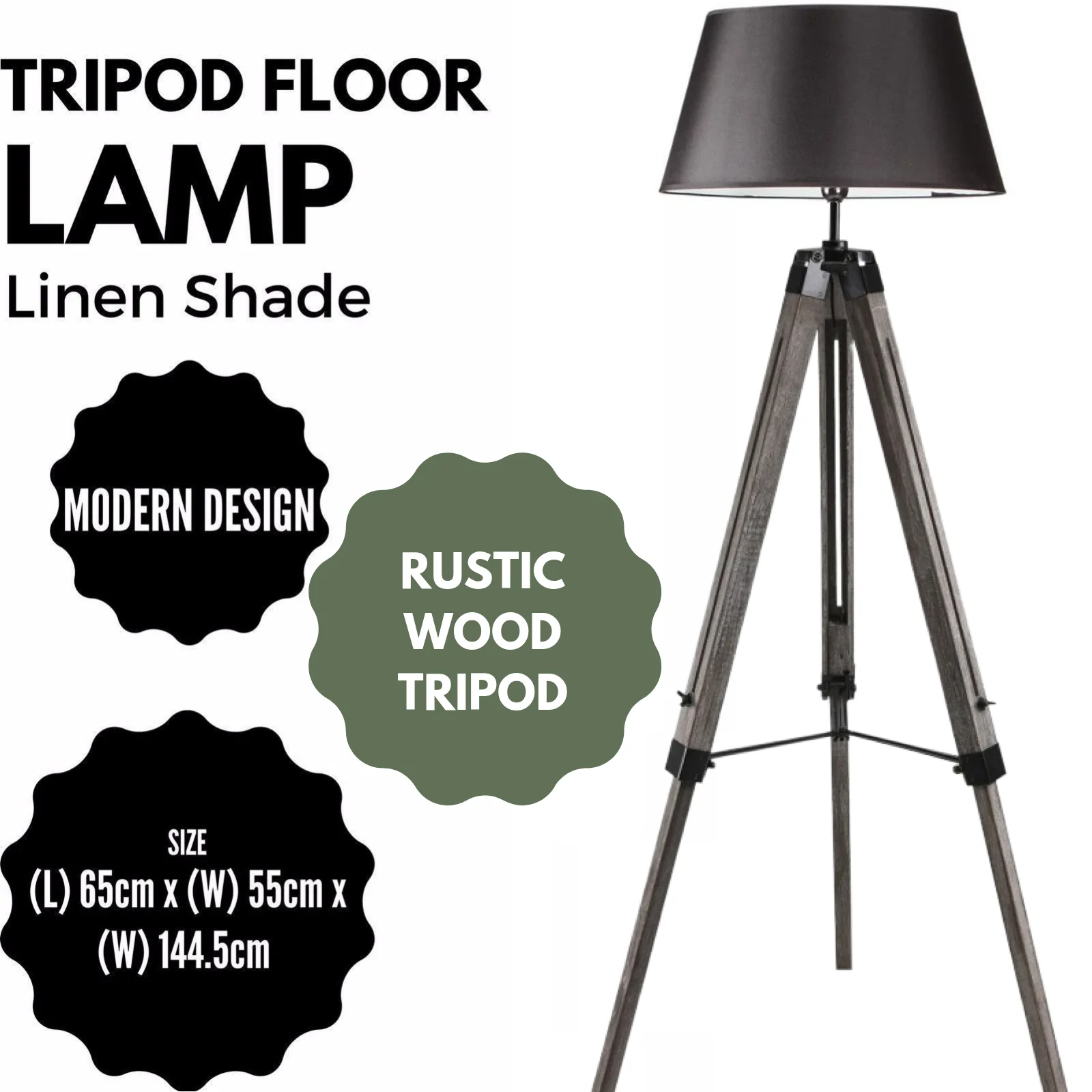 Discover a blend of modern aesthetics and vintage charm with our Large Tripod Floor Lamp, a distinguished addition to any living space, studio, or office. This lamp combines the rustic allure of antique wood with the sleek sophistication of a black linen shade, creating a stunning piece that lights up a room both literally and figuratively.