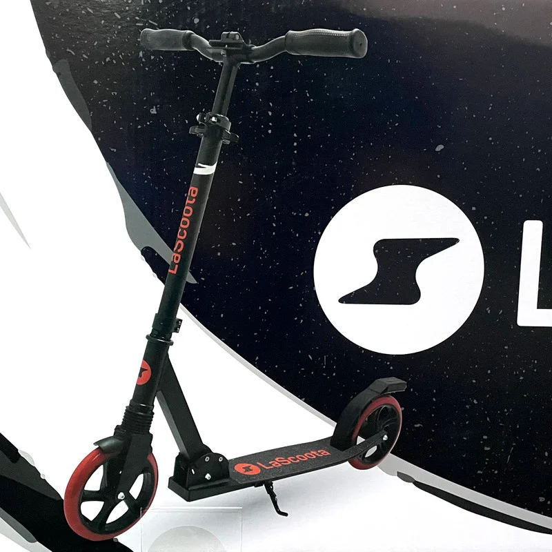 Skip walking and enjoy commuting with the Lascoota Pulse Kick Scooter - Black colour with red wheels