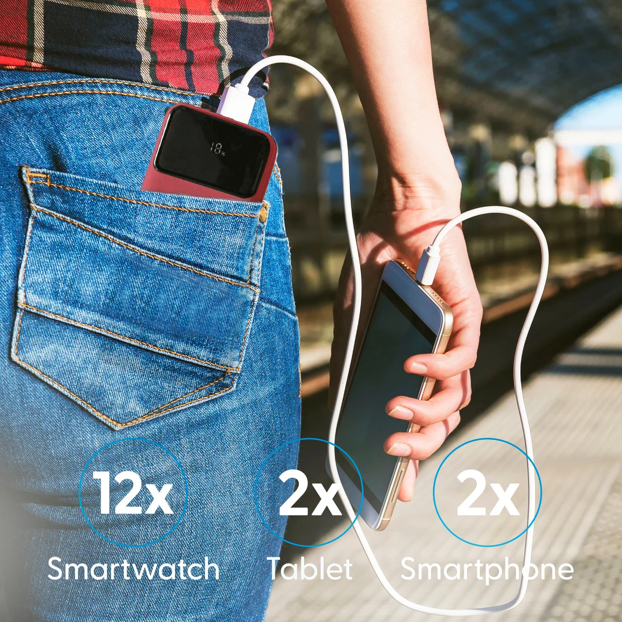 - 10,000mAh - two smartphone charges - or a smartwatch up to 16 times or a tablet up to two times. Ideal for those long days away or extended time away from home/office