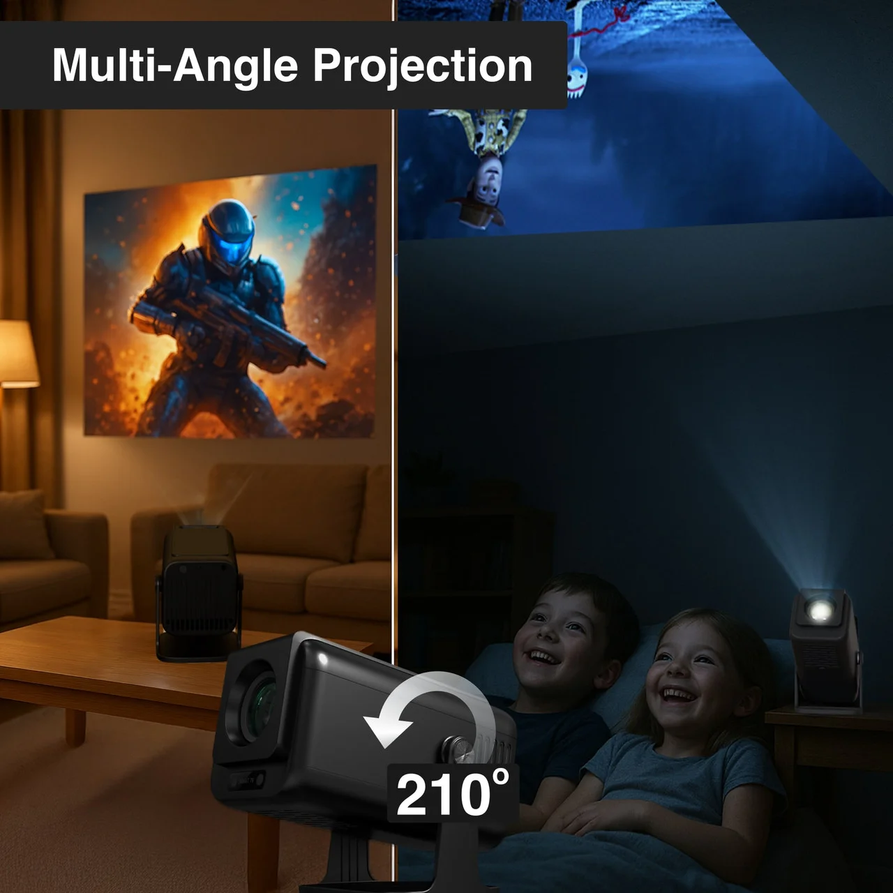 Whether you're watching movies, gaming, or streaming your favorite content, the 1080P LED Multi-Angle Projector delivers high-quality visuals and seamless connectivity. Set up your personal home cinema today!