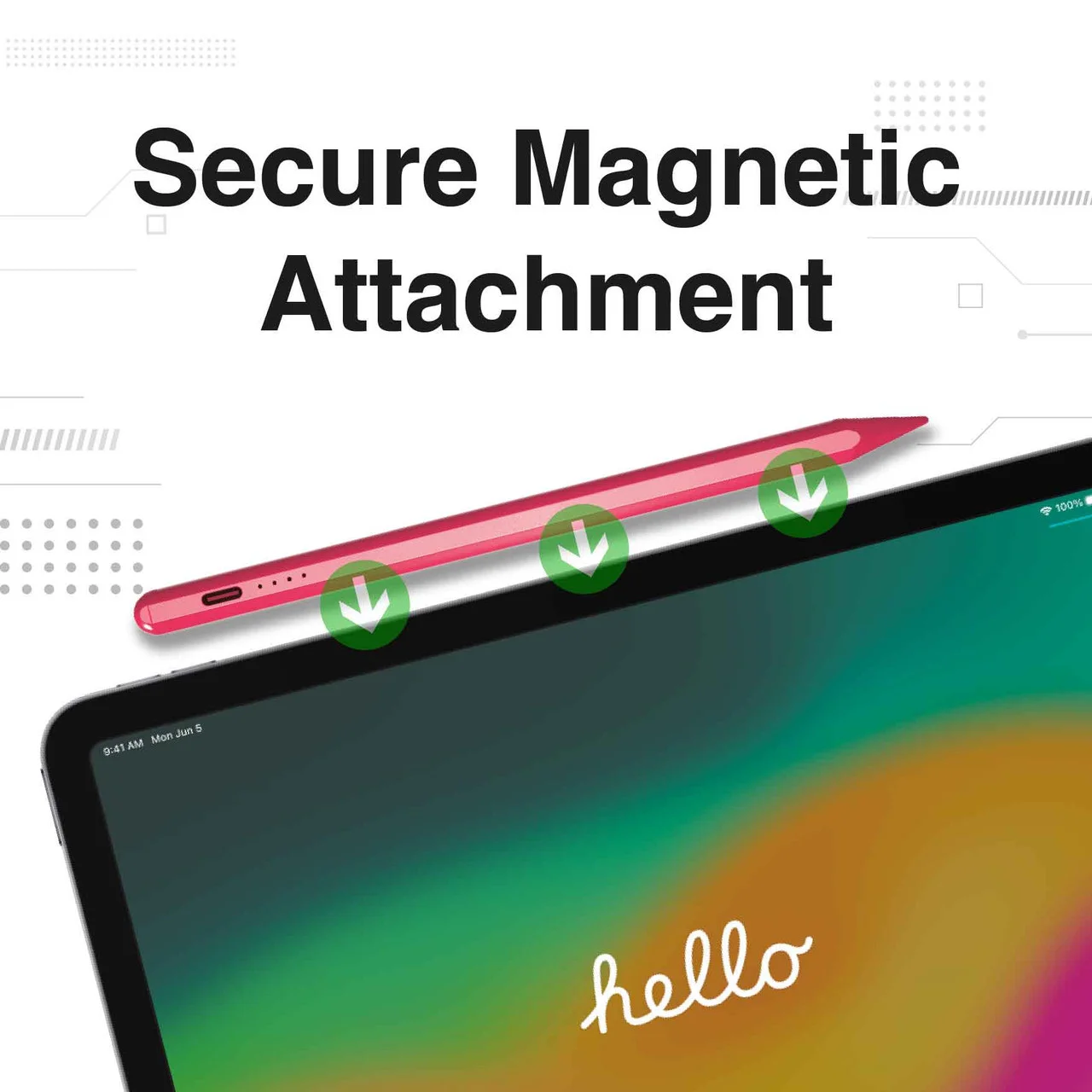 The magnetic attachment design allows the Laser Active Stylus Pen to be securely attached to the side of the iPad Pro, preventing rolling and loss. This feature enhances portability and makes organisation easier.