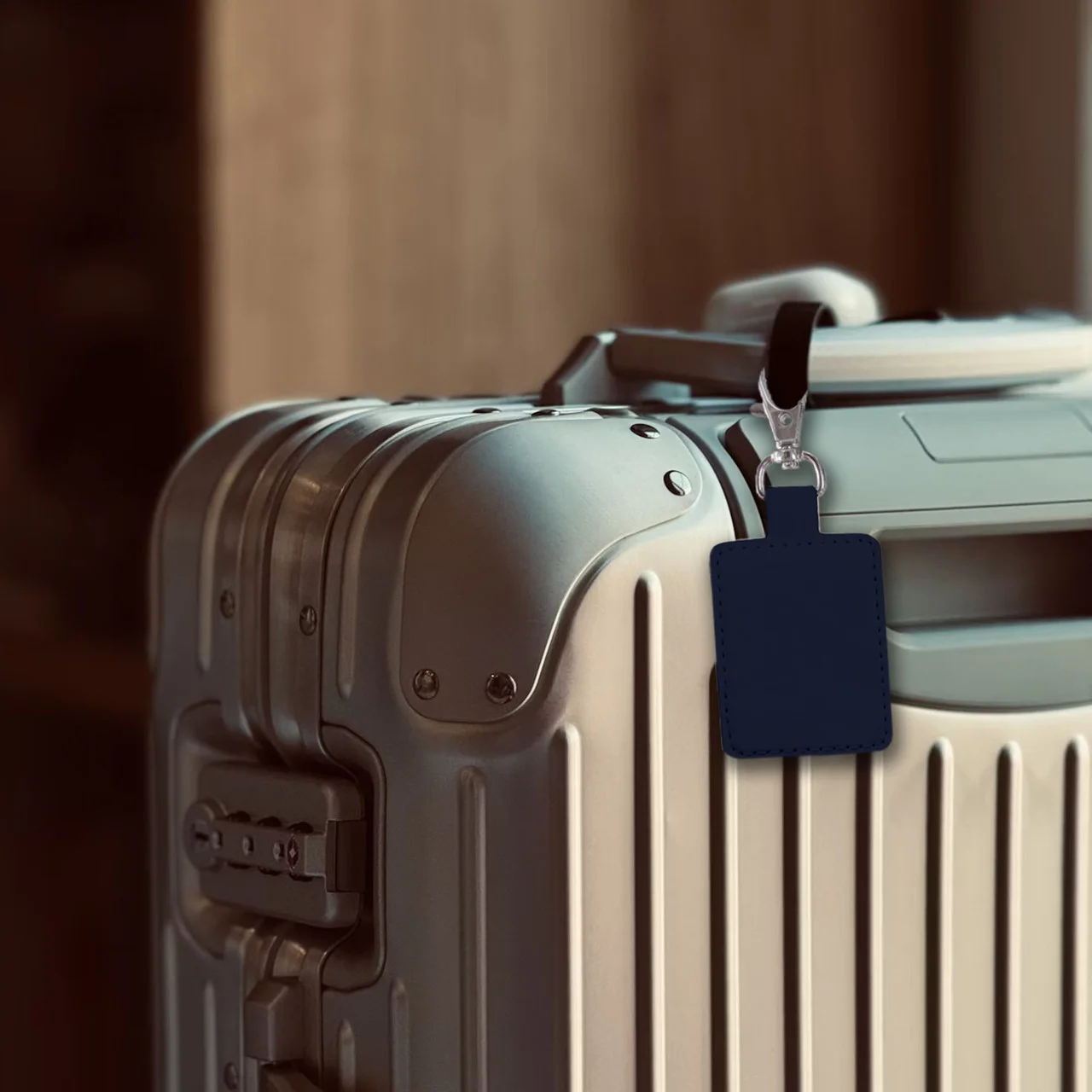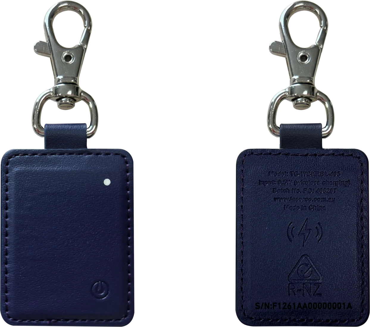 The Laser Smart Tag Key Ring Navy Blue easily attaches to keys or bags and works with Apples Find My network.