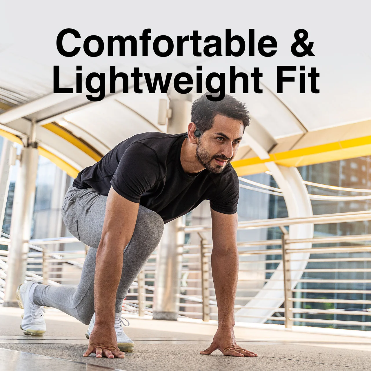With an open-ear air conduction design, these earphones keep you safe, comfortable, and fully immersed in sound while letting you hear the world around you.