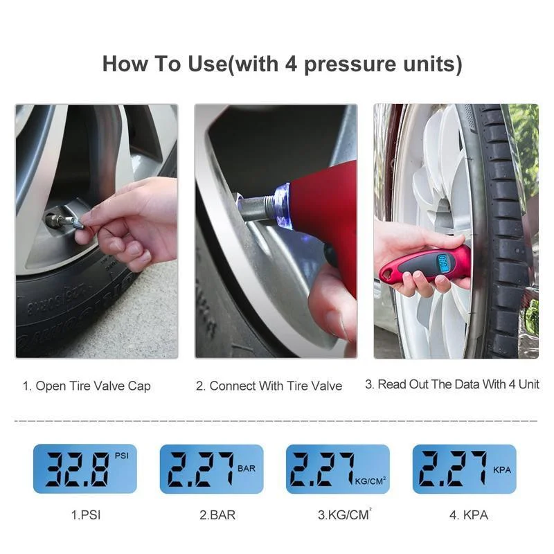 4 Measuring Units: Easily switch between PSI, BAR, KPa, and Kg/cm2.