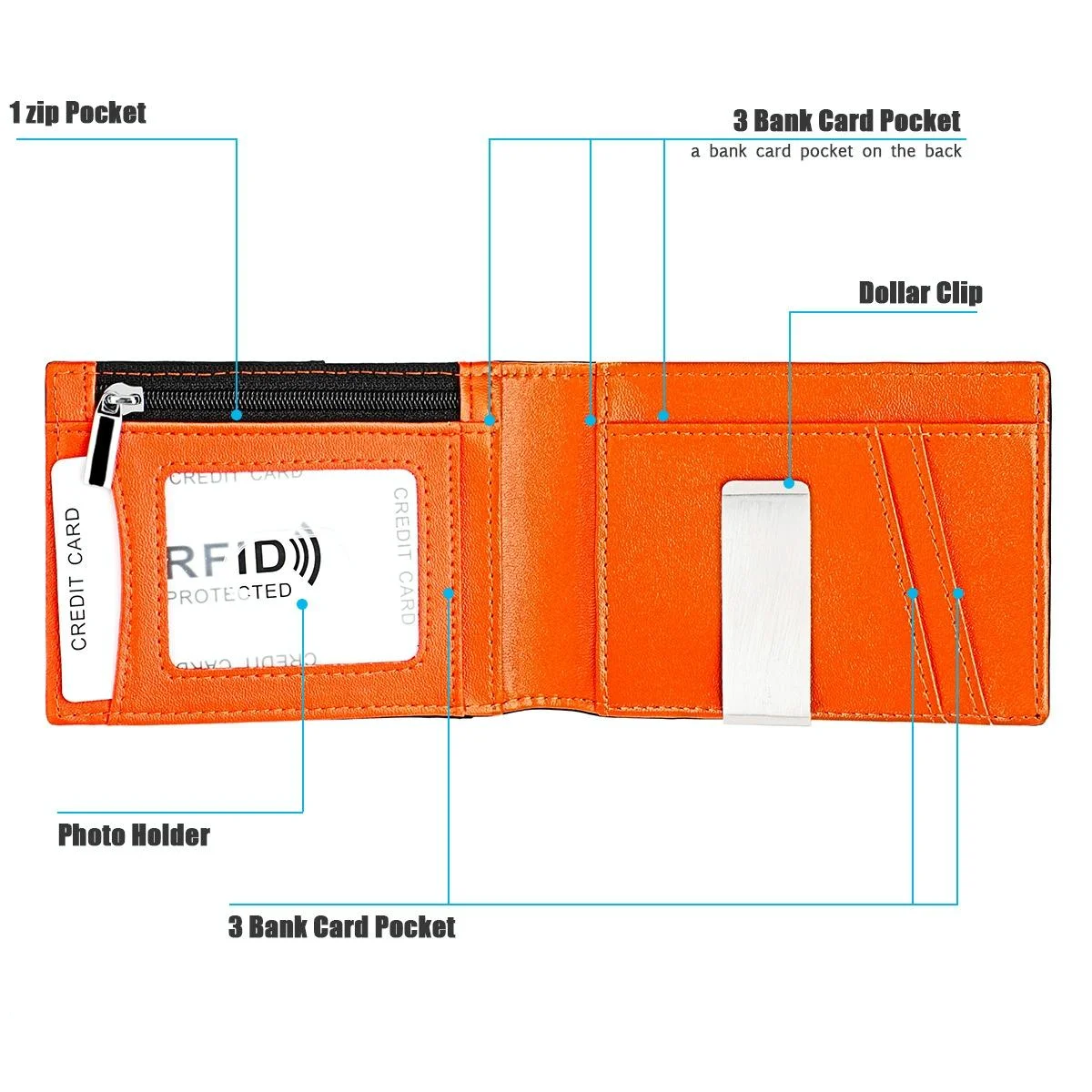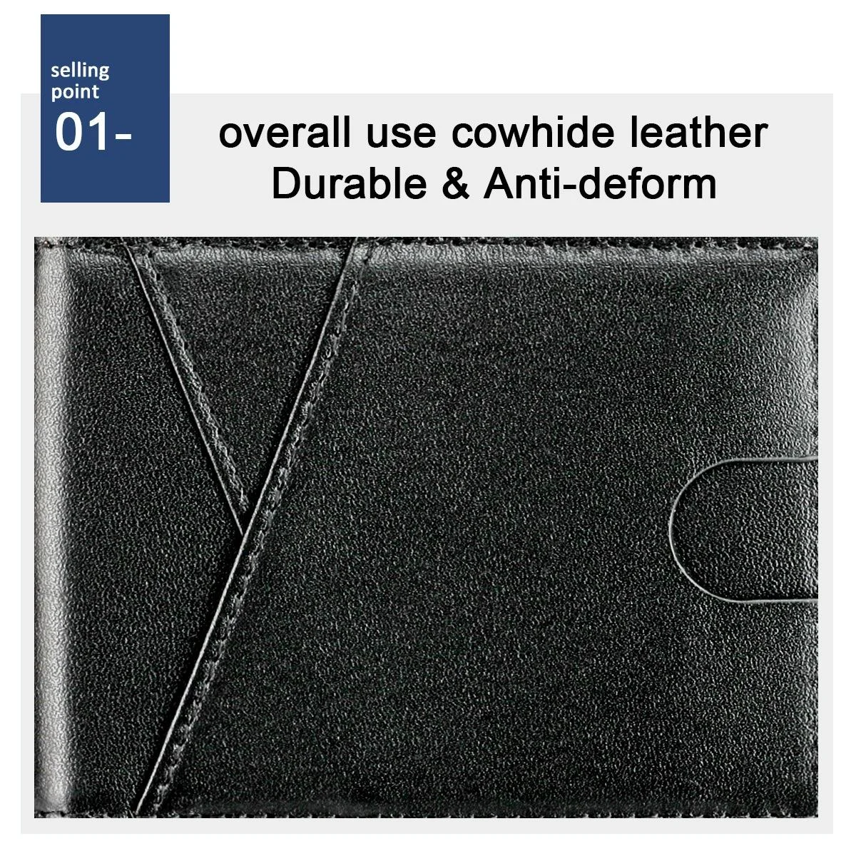 RFID Blocking Leather Card Wallet with Money Clip for Men Credit Holder - Dark Blue