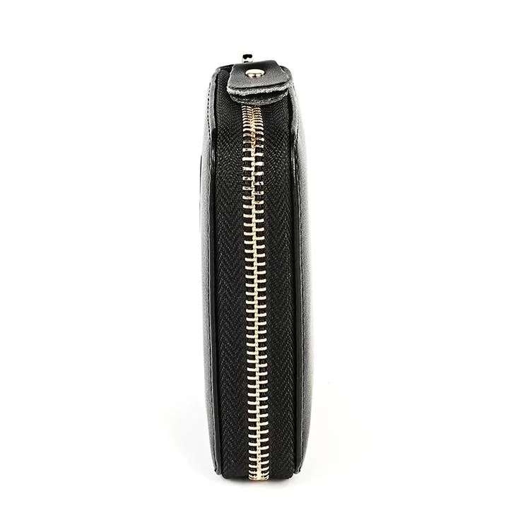Genuine Leather RFID Blocking Accordion Card Holder & Coin Purse - Large Capacity Zip Wallet(black)