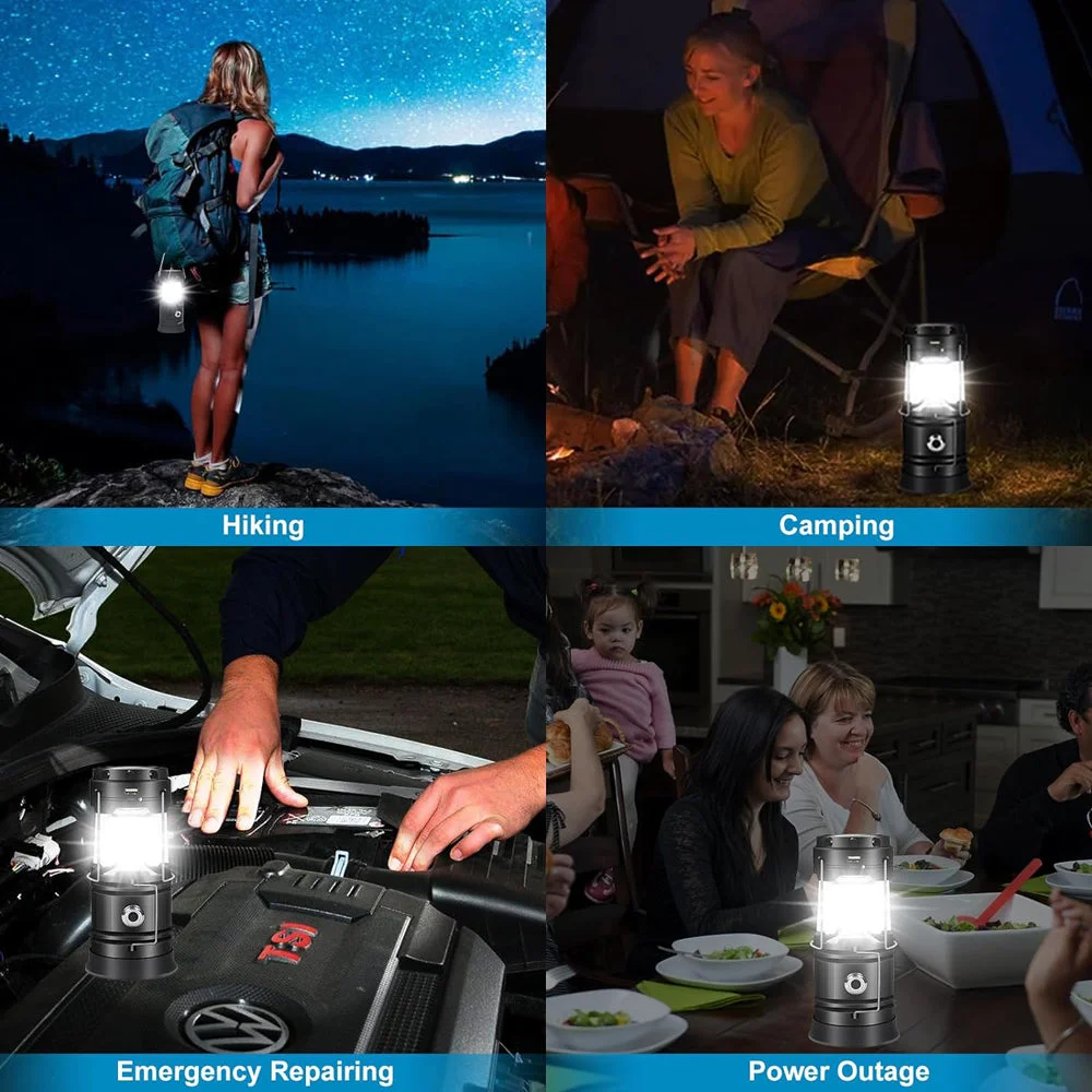 3 in 1 lantern flashlight: There are three ways to use the super bright LED light. You can put the camping lamp in the warehouse as a light source when you are in the field, and you can carry it in your hand to illuminate everyone during activities. The camping light is designed to be portable and compact. You can also use the bottom LED as a torch to meet all your needs.