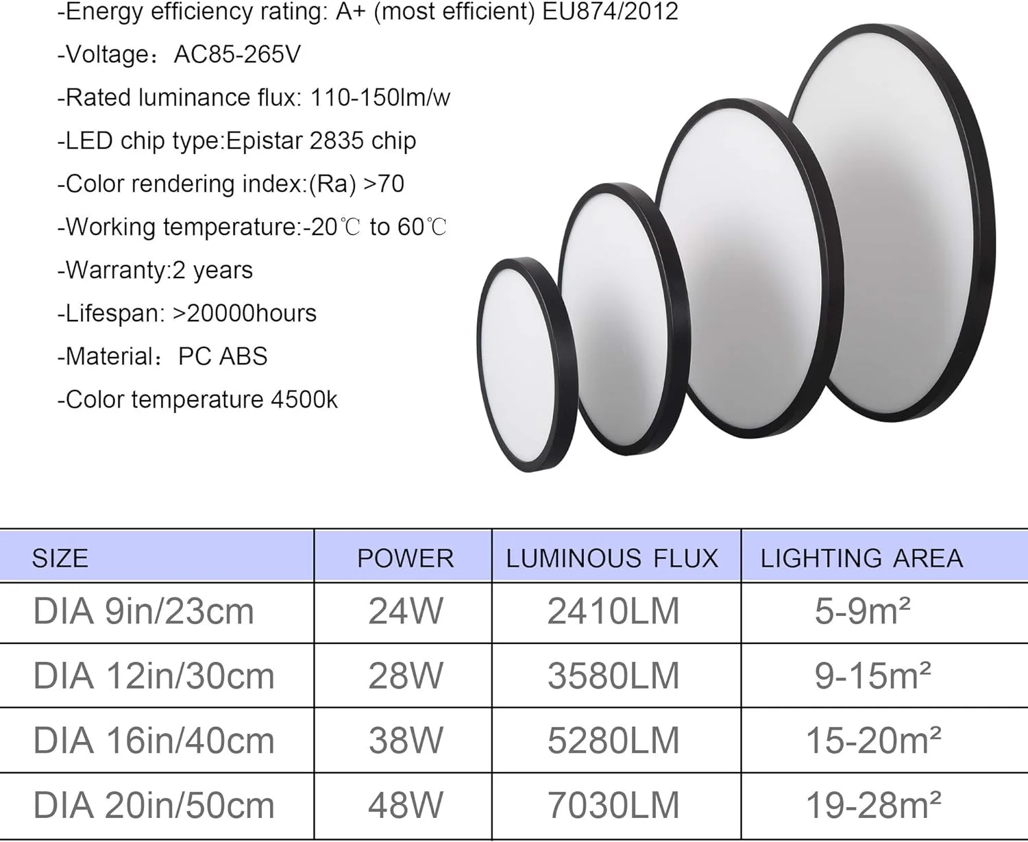 - Light up your kitchen, bedroom, utility, closet, or any room with this sleek black LED ceiling light fixture. Its thin design and natural 4500K light make it the perfect addition to any modern space. Enjoy easy installation with the surface mount feature and long-lasting energy efficiency.
