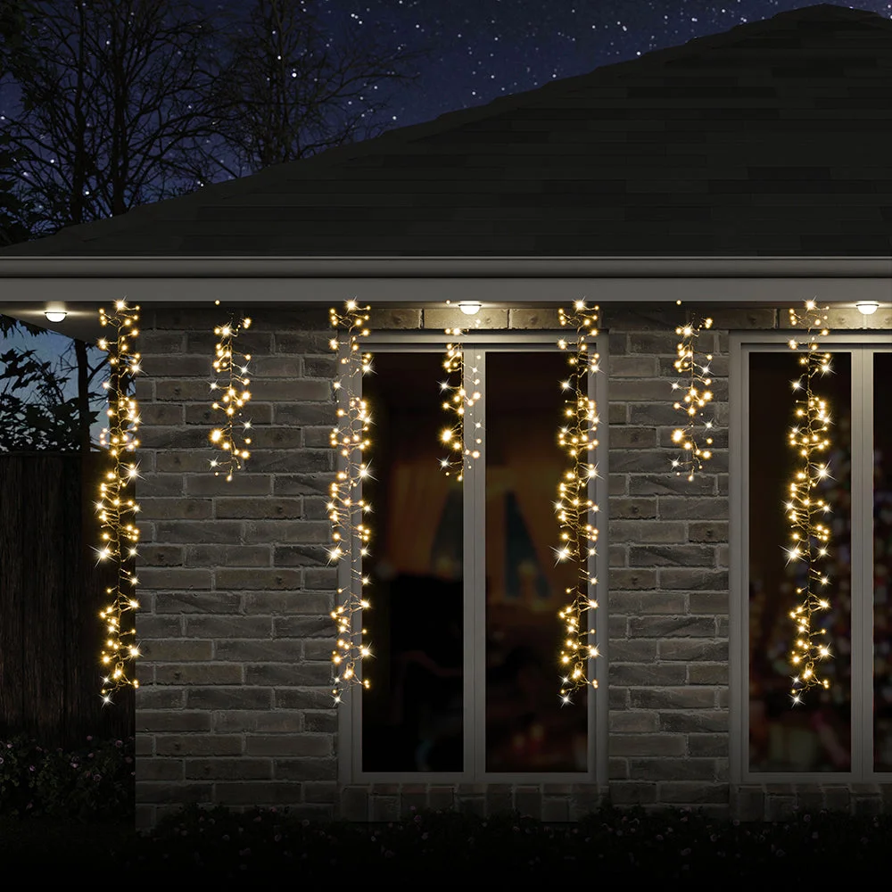 Enhance your holiday decor with these LED dancing cluster icicles, 9m in length, perfect for adding dynamic lighting effects.