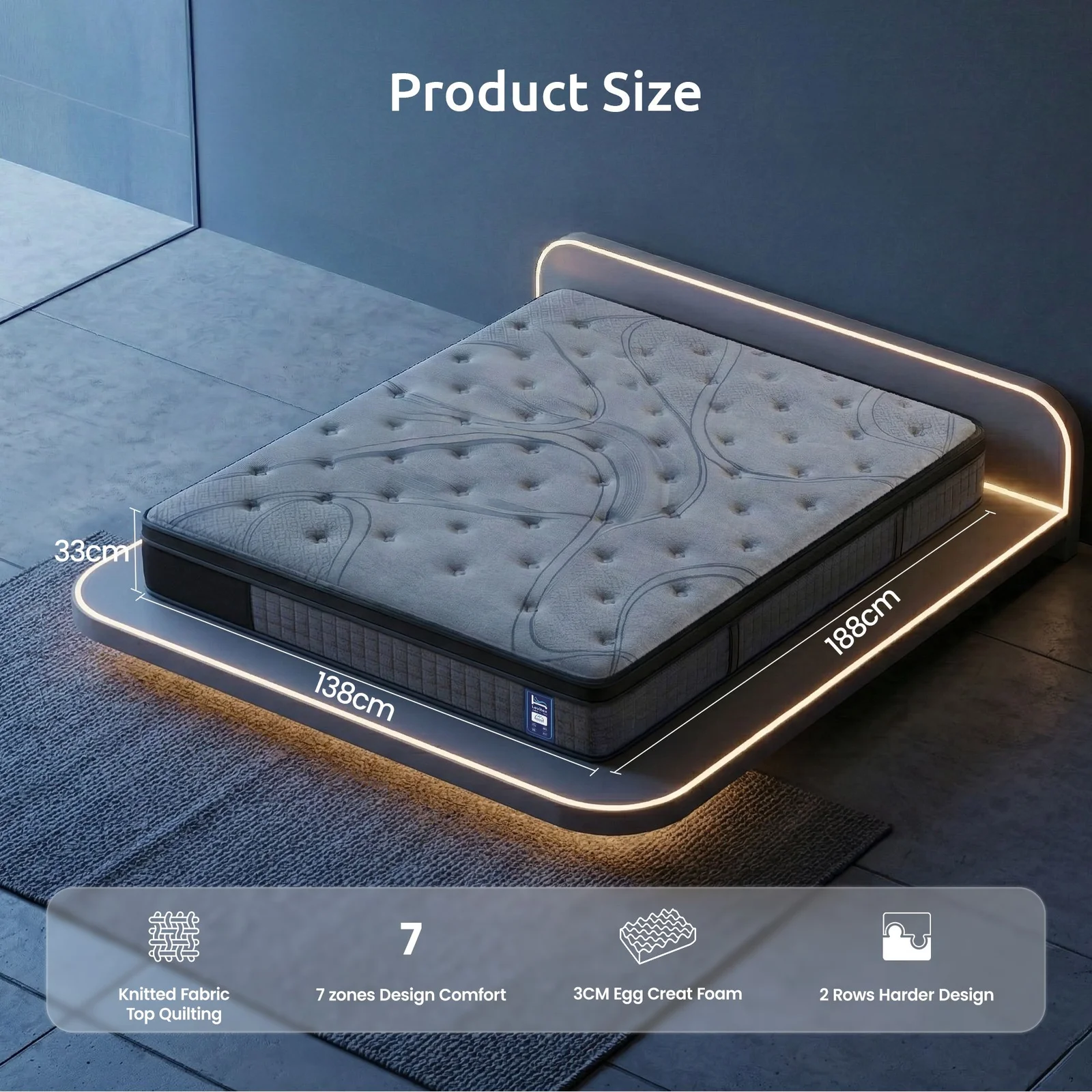 7-Zone Ergonomic Design: Targeted pressure relief for head, shoulders, waist, hips, and legs.