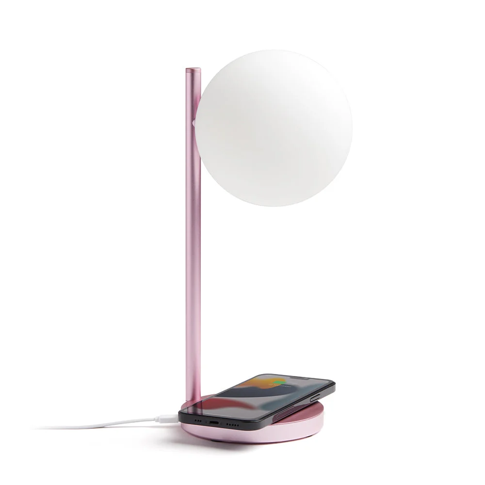 Lexon Bubble Desk Lamp With Built-In Wireless Charger - Pink - Acting both as a sleek LED lamp and wireless charging station, Bubble Lamp is the perfect object to complement your desk, nightstand or coffee table. Easy to use, it can be entirely operated from a single tap to turn the light on/off, change LED colors and adjust brightness. Its wireless charger is discreetly integrated into its base to fast charge Qi-compatible smartphones and earbuds, with a power of up to 15W. Bubble Lamp is equipped with 2 USB-C ports: one for charging the lamp and the other for charging your laptop or other device, with an output power of up to 40W. This will allow you to easily centralize your charging and lighting area onto your desk. Designed in an aluminum finish and featuring an opal glass diffuser, Bubble Lamp will add a touch of modernity and sophistication to your interior.