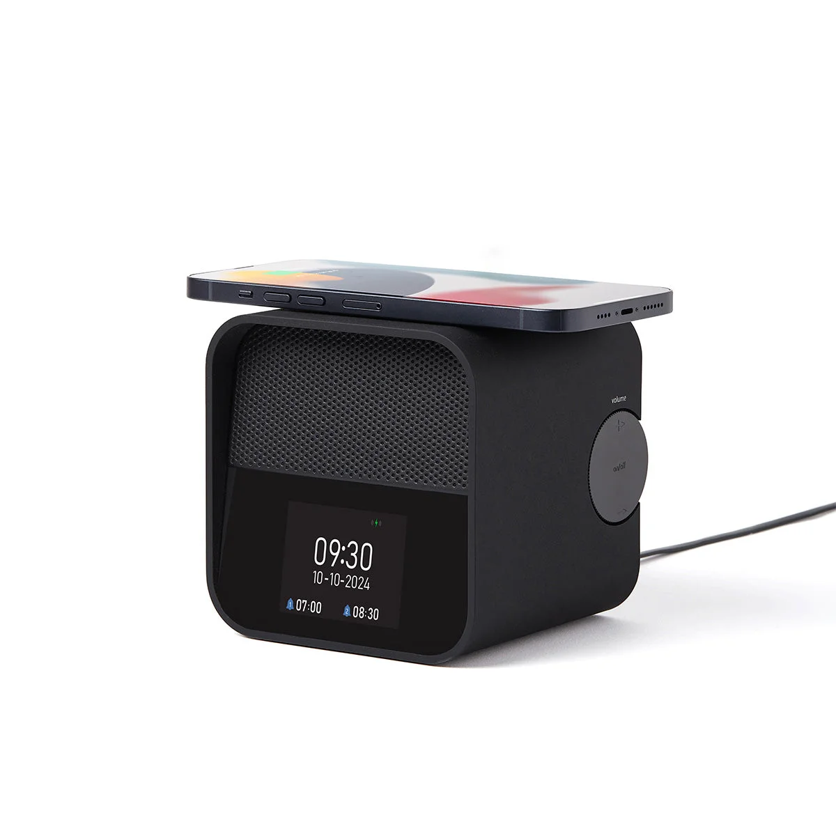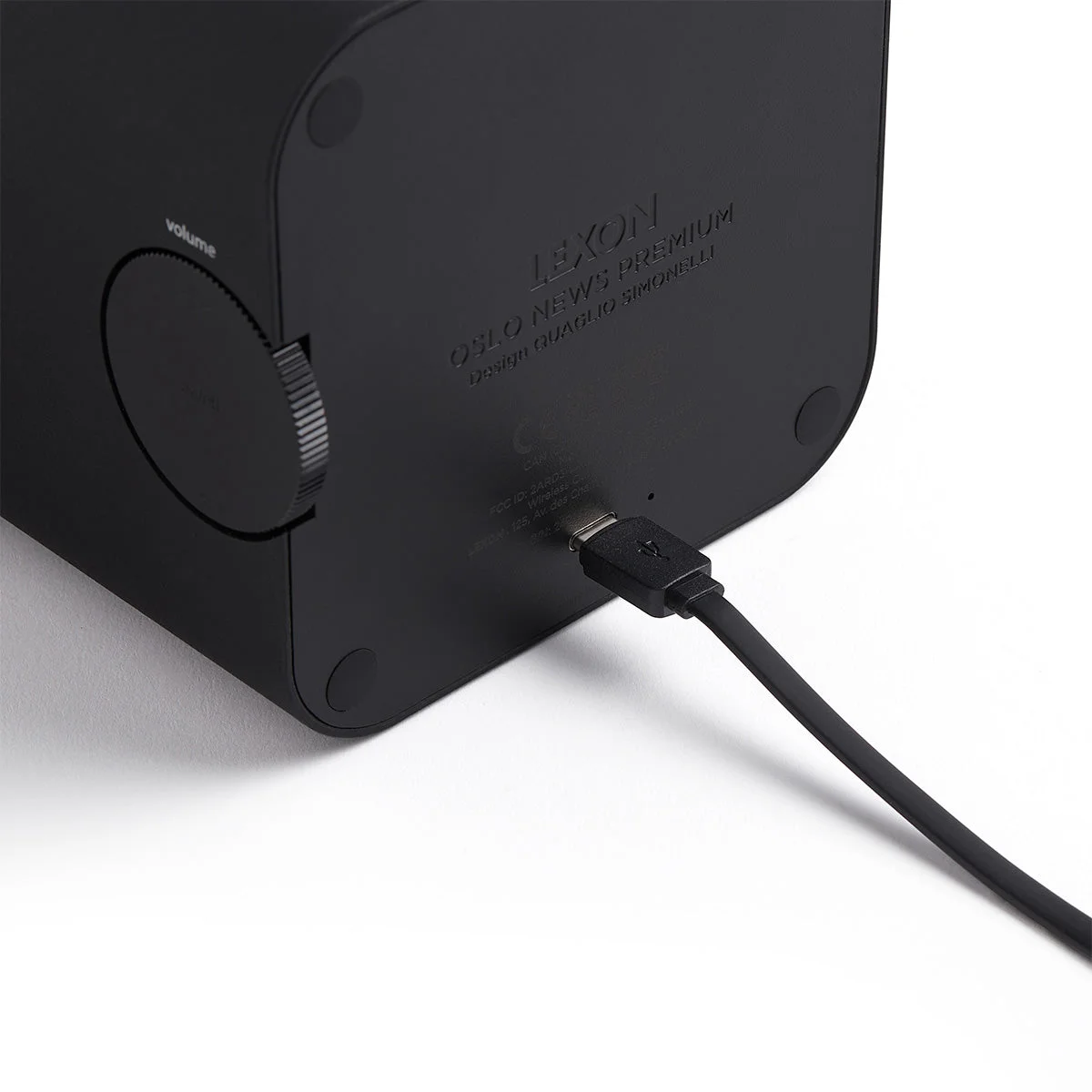 Lexon Oslo Dab Fm Alarm Clock Radio / Bluetooth Speaker / Wireless Charger - Black - Start your day with the Lexon Oslo News+, a versatile DAB FM radio and so much more! Oslo News+ combines multiple valuable features at once: radio, alarm clock, speaker and a built-in wireless charging QI pad on its top surface. Boasting an impressive sound quality, listen to your favourite station or stream your playlist via Bluetooth while charging your phone wirelessly. With Oslo News+ Qi technology, you can charge your smartphone conveniently during the day or at night. With its sleek and modern design, Oslo News+ is the perfect bedside companion.