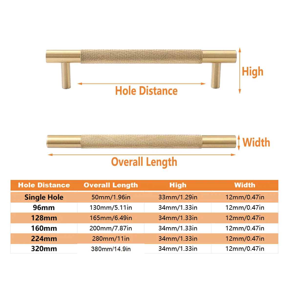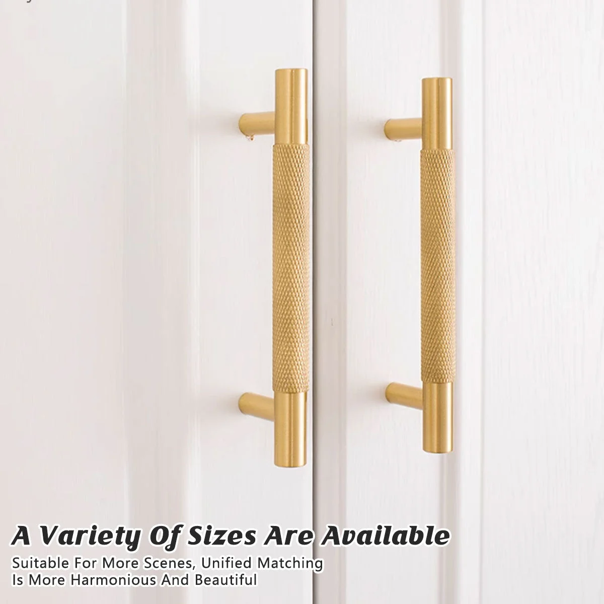 Upgrade your cabinets with this modern straight knurled handle. Crafted from solid copper, it features a textured surface for a secure grip and a sleek electroplated finish that resists rust and wear. Available in multiple sizes, this handle fits various hole distances and complements wardrobes, drawers, and cupboards with its minimalist luxury look.