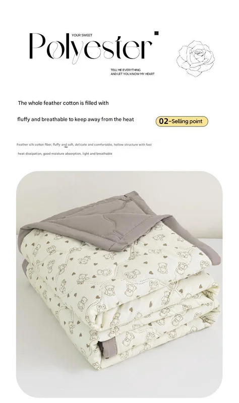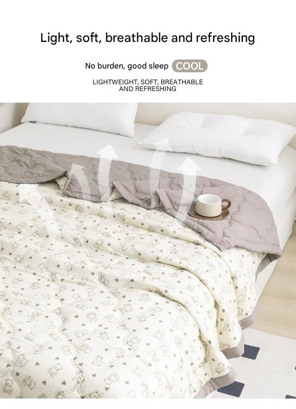 Enjoy a cool, comfortable, and refreshing night's sleep with our Lightweight Summer Quilt. This beautifully crafted quilt is designed to be soft, breathable, and moisture-wicking, ensuring you stay comfortable without feeling burdened. It features a reversible AB-side design, with one side showcasing an elegant pattern and the other a simple, solid shade for versatile styling. The quilt is filled with a whole sheet of fluffy and breathable polyester fiber, which helps to dissipate heat quickly and provides a delicate, comfortable feel. The ultrasonic quilting process ensures the filling is evenly distributed and stays in place, preventing clumping and deformation. Made with a washed cotton fabric exterior and active printing technology, this quilt is conveniently machine washable, resistant to fading, and maintains its vibrant appearance.