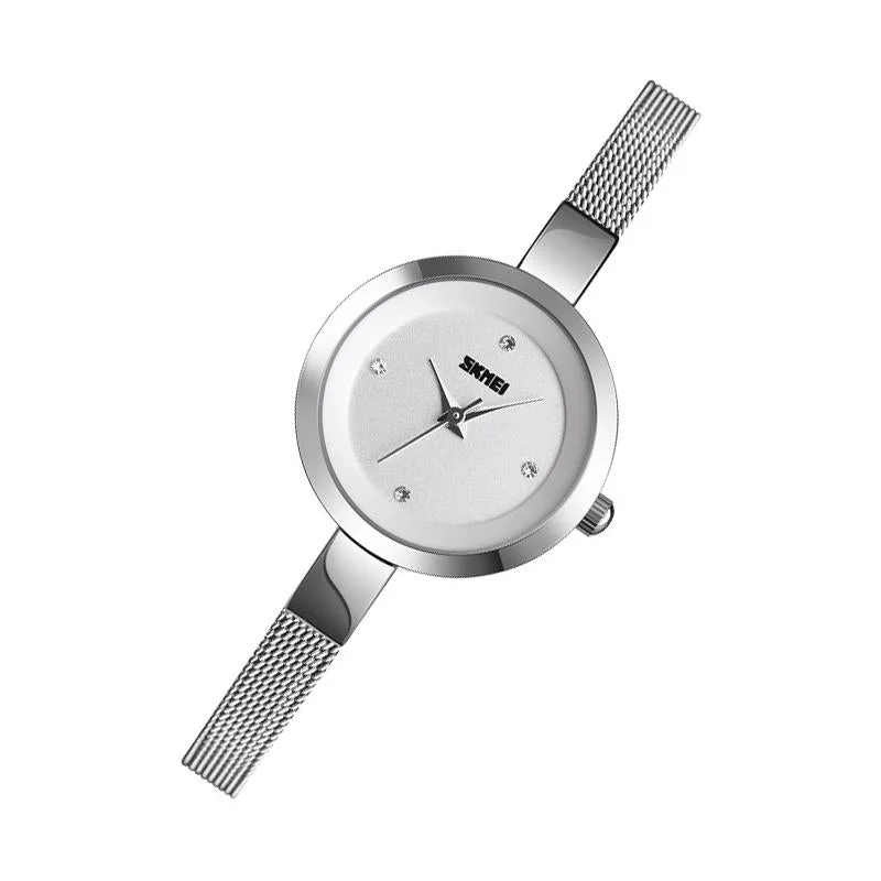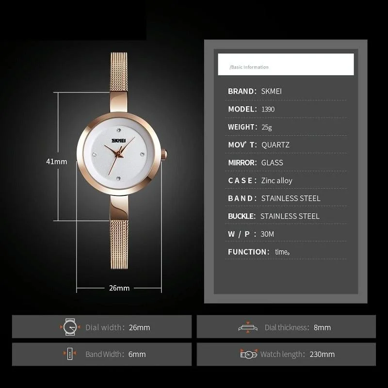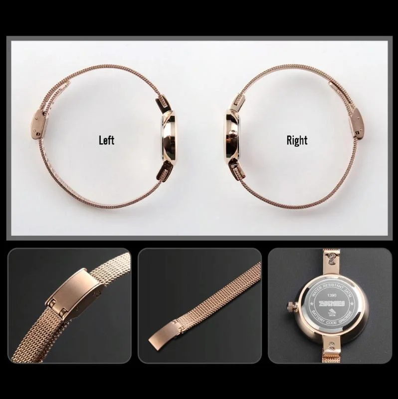 Waterproof Quartz Watch with Stainless Steel Buckle Strap for Women - Silver Shell Black Surface
