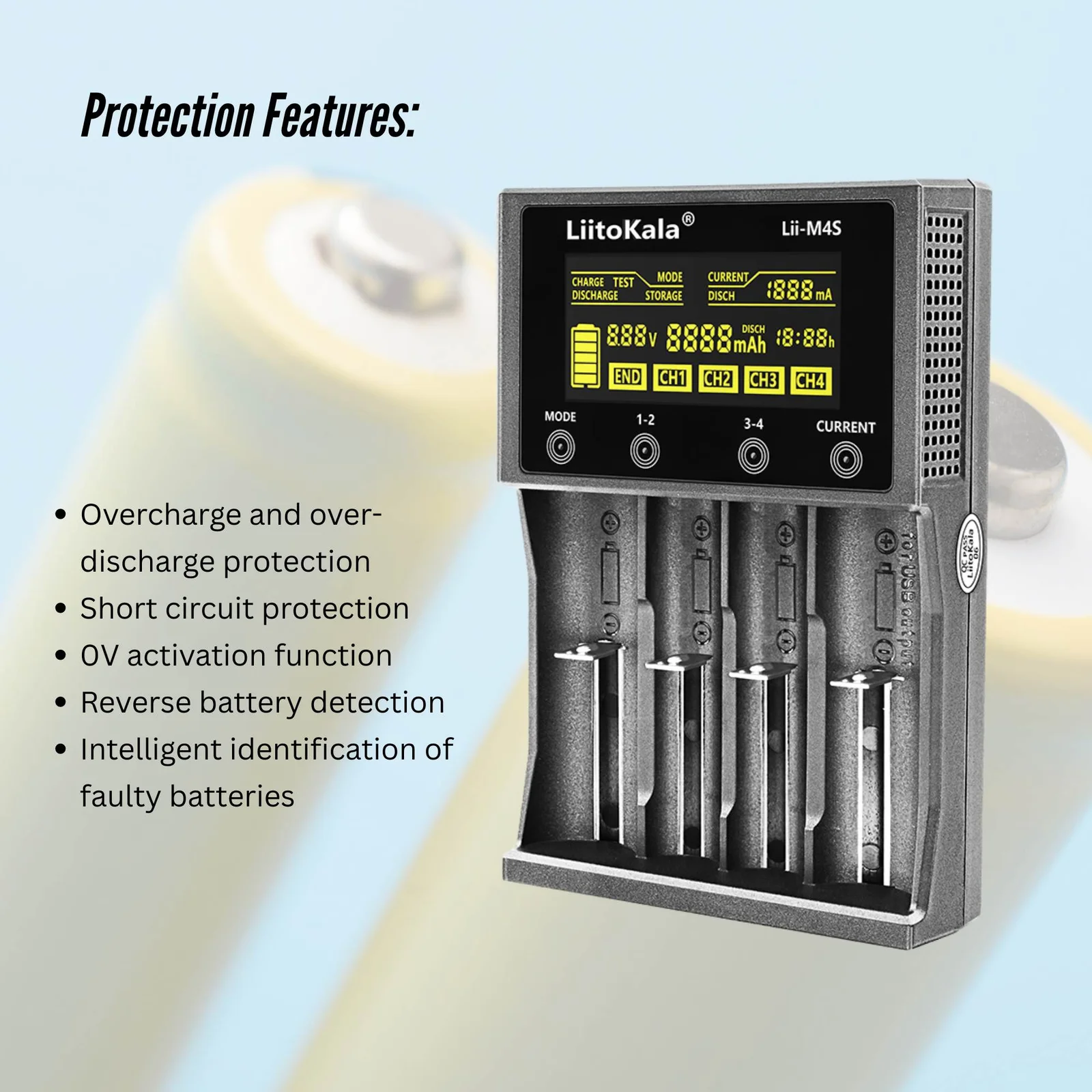 The LiitoKala Lii-M4S is a versatile and intelligent battery charger designed to accommodate a wide range of rechargeable batteries. With its advanced touch control interface and clear LCD display, users can easily navigate through various charging modes and monitor battery status in real-time. The charger supports multiple battery chemistries and sizes, making it an ideal choice for both everyday users and enthusiasts.