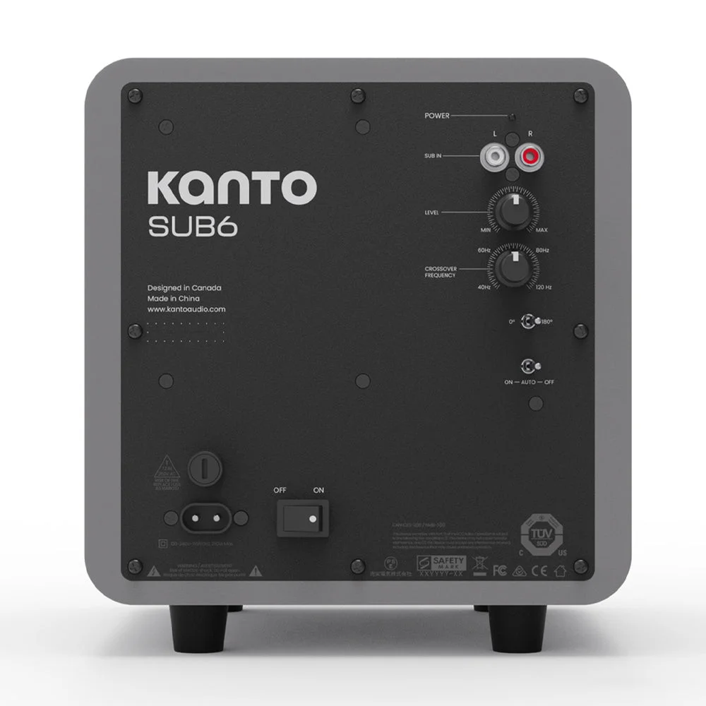 Limited Edition - Kanto SUB6 200W 6" Sealed Powered Subwoofer, Matte Grey - Bring depth and definition to your sound system with the Kanto SUB6, a compact yet powerful sealed subwoofer engineered for precision and performance. Featuring an 6-inch woofer powered by a robust 200W Class D amplifier, the SUB6 responds swiftly to transients, delivering tight, distortion-free bass that enhances everything from music to movie soundtracks.