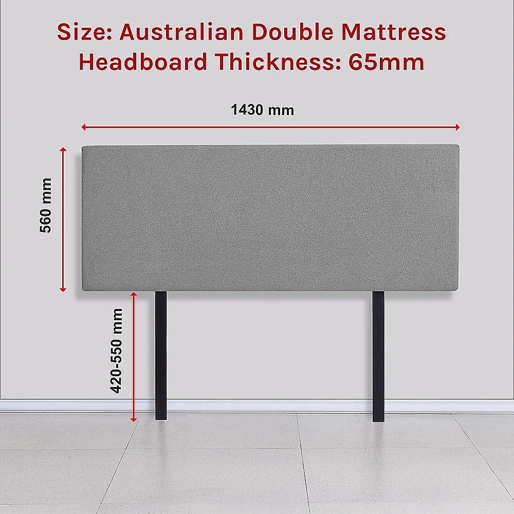 This headboard for Australian standard double-sized bed frames is created with quality materials, including easy-to-maintain linen fabric that will maintain its sophisticated look for many years to come. This particular model comes with simple design that will blend seamlessly with a wide variety of bed frames and other bedroom furniture.