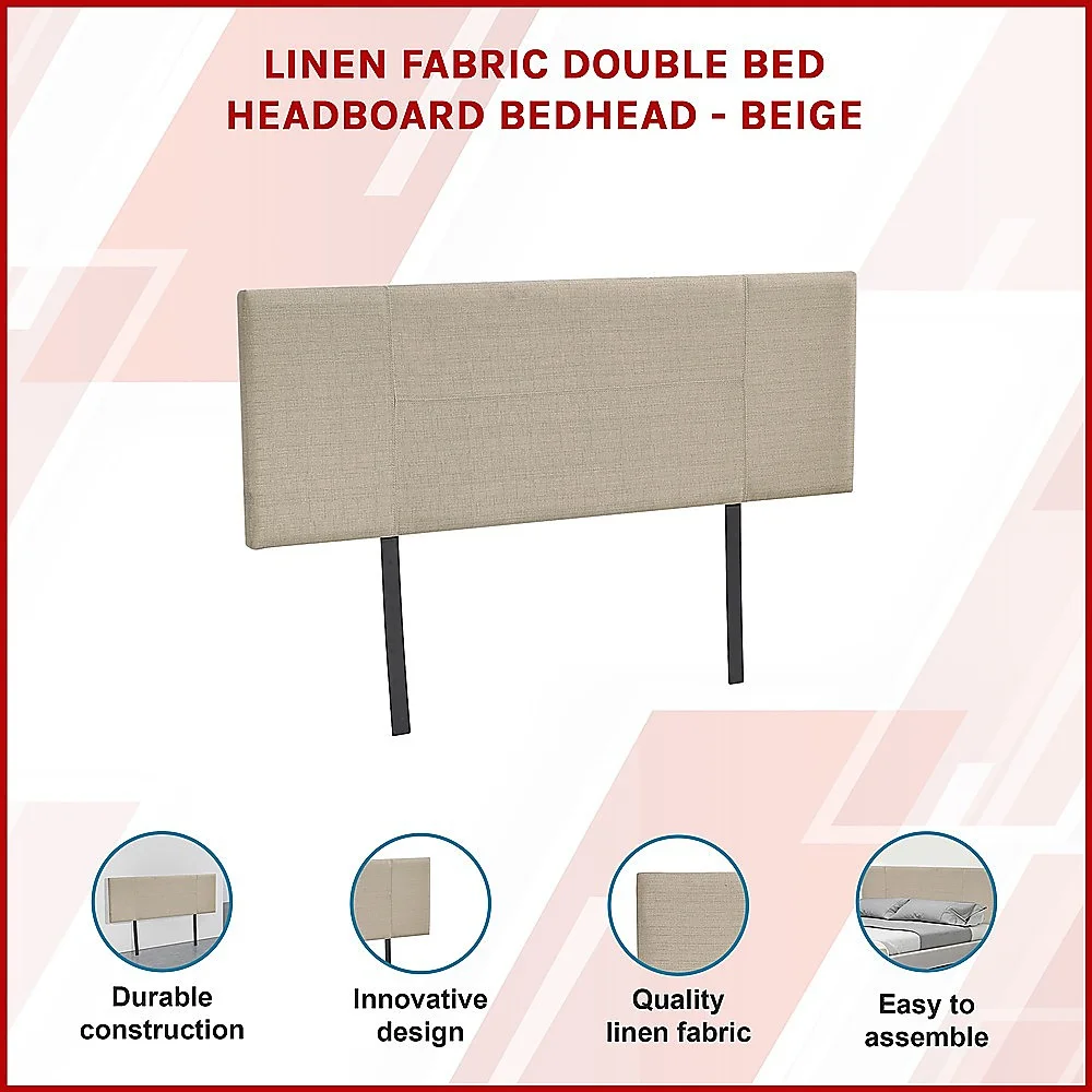 This headboard for standard Double-sized bed frames is created with quality materials, including easy-to-maintain Linen Fabric that will maintain its sophisticated look for many years to come. This particular model comes with elegant stitching accents that provide just the right level of understated pop. A neutral beige will blend seamlessly with a wide variety of bed frames and other bedroom furniture.