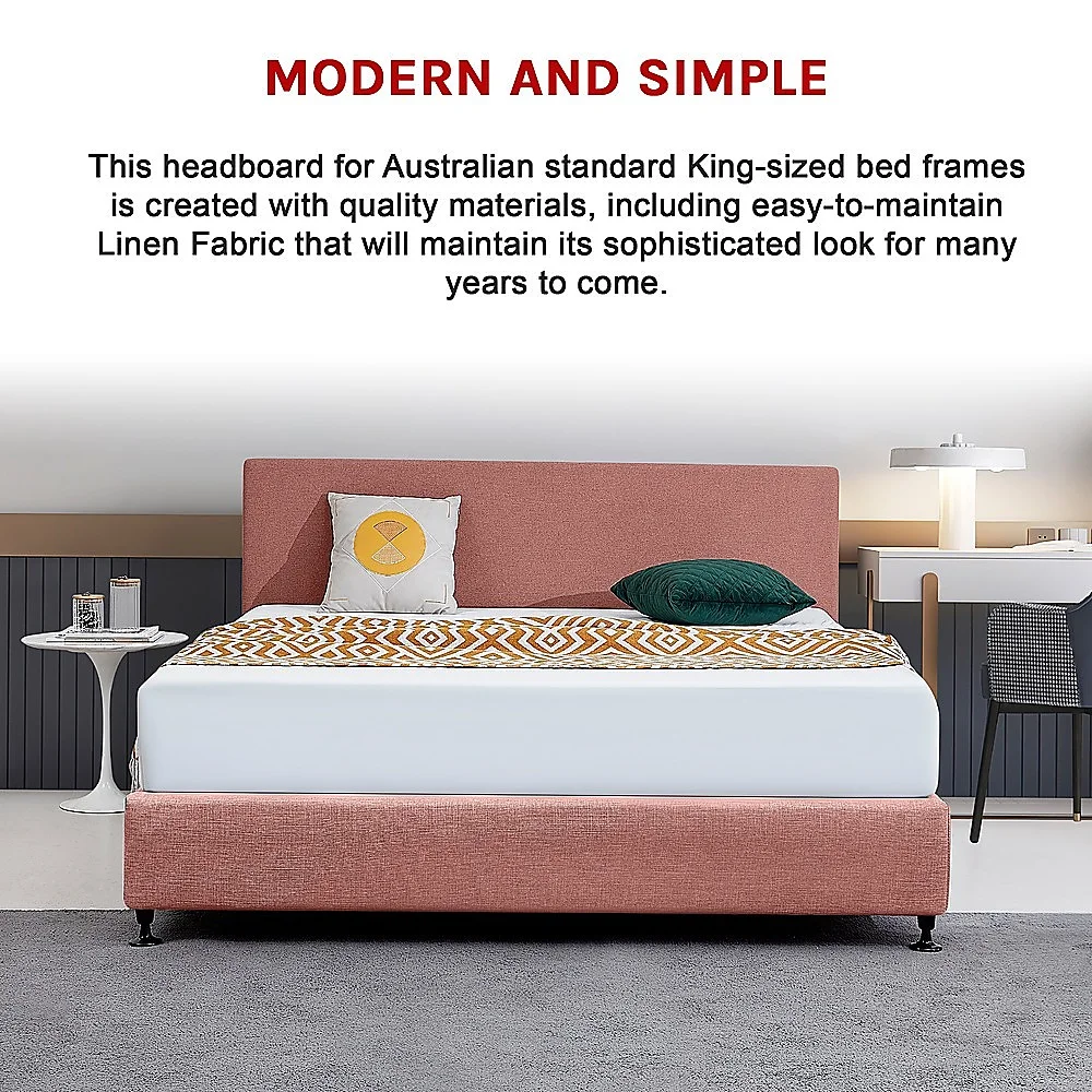 This headboard for Australian standard King-sized bed frames is created with quality materials, including easy-to-maintain Linen Fabric that will maintain its sophisticated look for many years to come. This particular model comes with simple linen fabric that will blend seamlessly with a wide variety of bed frames and other bedroom furniture.