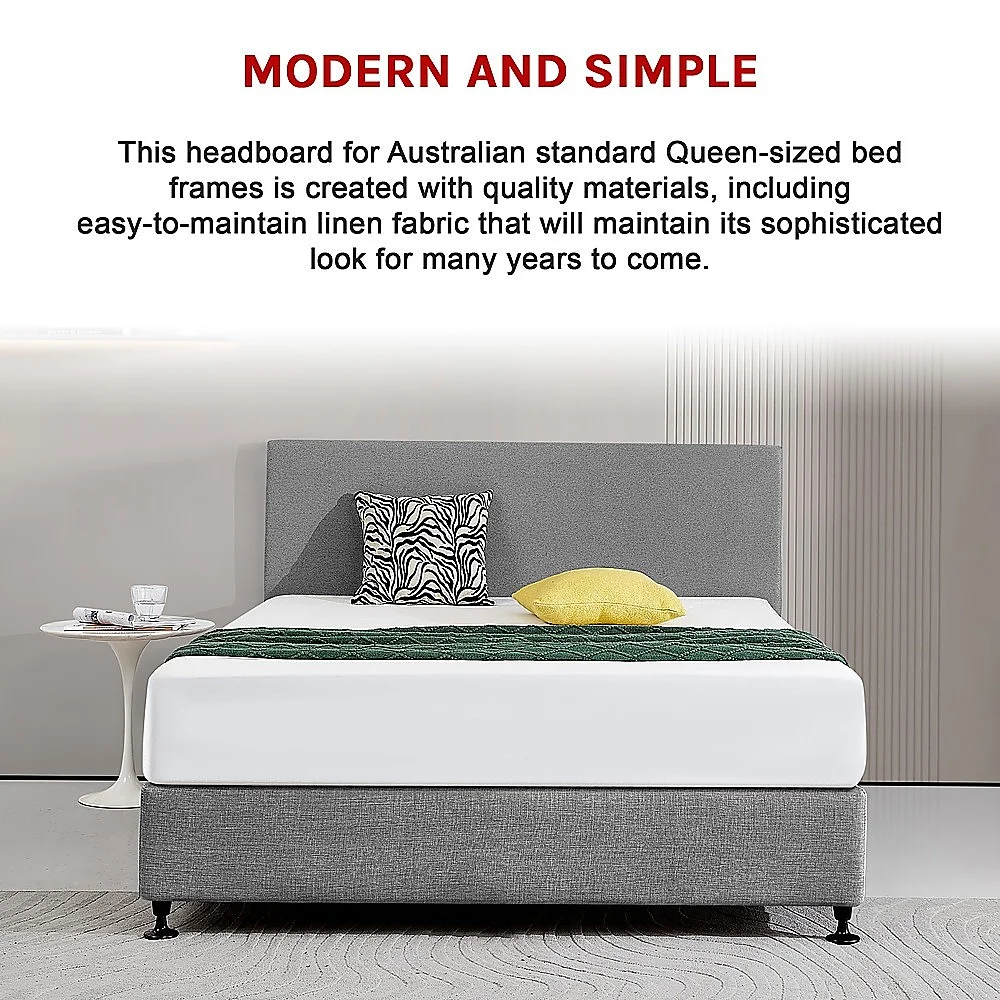 This headboard for Australian standard Queen-sized bed frames is created with quality materials, including easy-to-maintain Linen Fabric that will maintain its sophisticated look for many years to come. This particular model comes with simple linen fabric that will blend seamlessly with a wide variety of bed frames and other bedroom furniture.