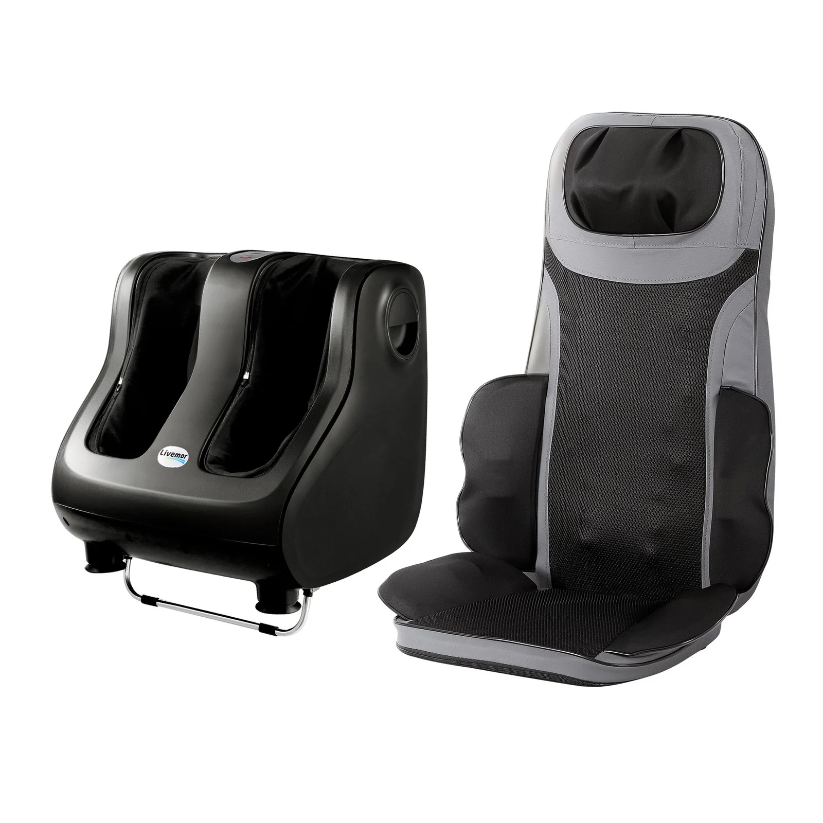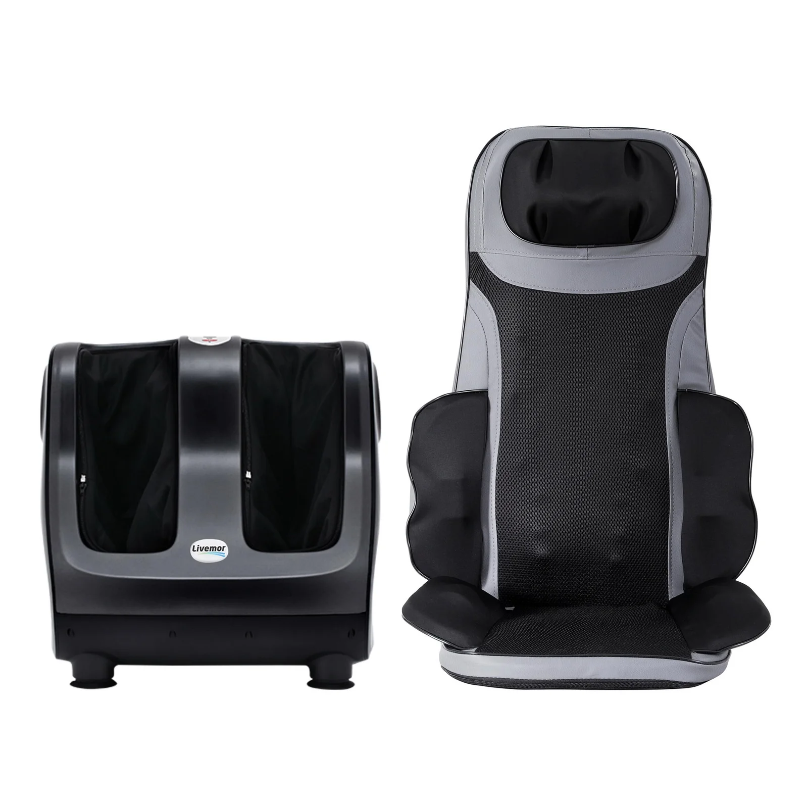 Experience the ultimate full-body rejuvenation with the Livemor Total Relaxation Bundle, combining our premium Foot Massager and versatile Massage Seat for a professional-grade spa experience at home. After a long day on your feet, sink into the Livemor Massage Seat, which features six auto modes and forward/reverse kneading to target deep muscle tension across your entire back. Enhanced with two adjustable heating levels and vibrating lumbar support, it's designed to melt away stress whether you're in the office or lounging in the living room. Complementing this is the Livemor Foot Massager, an intuitive system that delivers customizable pressure and speed to tired calves and feet. Controlled easily via a simple panel or remote, it includes a 15-minute auto-shutoff for safety and a washable fabric liner for effortless hygiene. Together, these two powerhouses offer a seamless, neck-to-toe wellness solution, featuring SAA-certified adapters and portable designs that ensure comfort is always within reach. Please note: this product is not recommended for individuals with cardiac pacemakers. Reclaim your energy and treat your body to the comprehensive care it deserves with Livemor.