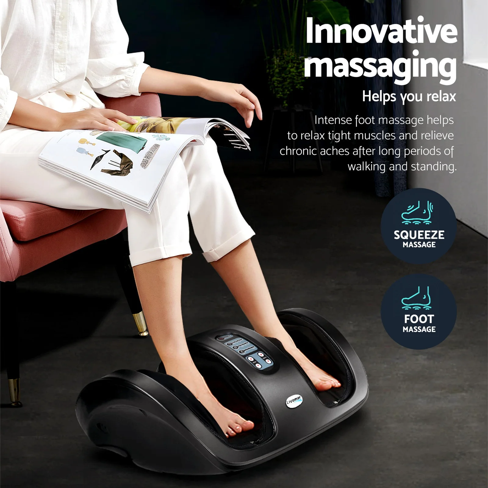 Experience the ultimate full-body rejuvenation with the Livemor Total Relaxation Bundle, combining our premium Foot Massager and versatile Massage Seat for a professional-grade spa experience at home. After a long day on your feet, sink into the Livemor Massage Seat, which features six auto modes and forward/reverse kneading to target deep muscle tension across your entire back. Enhanced with two adjustable heating levels and vibrating lumbar support, it's designed to melt away stress whether you're in the office or lounging in the living room. Complementing this is the Livemor Foot Massager, an intuitive system that delivers customizable pressure and speed to tired calves and feet. Controlled easily via a simple panel or remote, it includes a 15-minute auto-shutoff for safety and a washable fabric liner for effortless hygiene. Together, these two powerhouses offer a seamless, neck-to-toe wellness solution, featuring SAA-certified adapters and portable designs that ensure comfort is always within reach. Please note: this product is not recommended for individuals with cardiac pacemakers. Reclaim your energy and treat your body to the comprehensive care it deserves with Livemor.